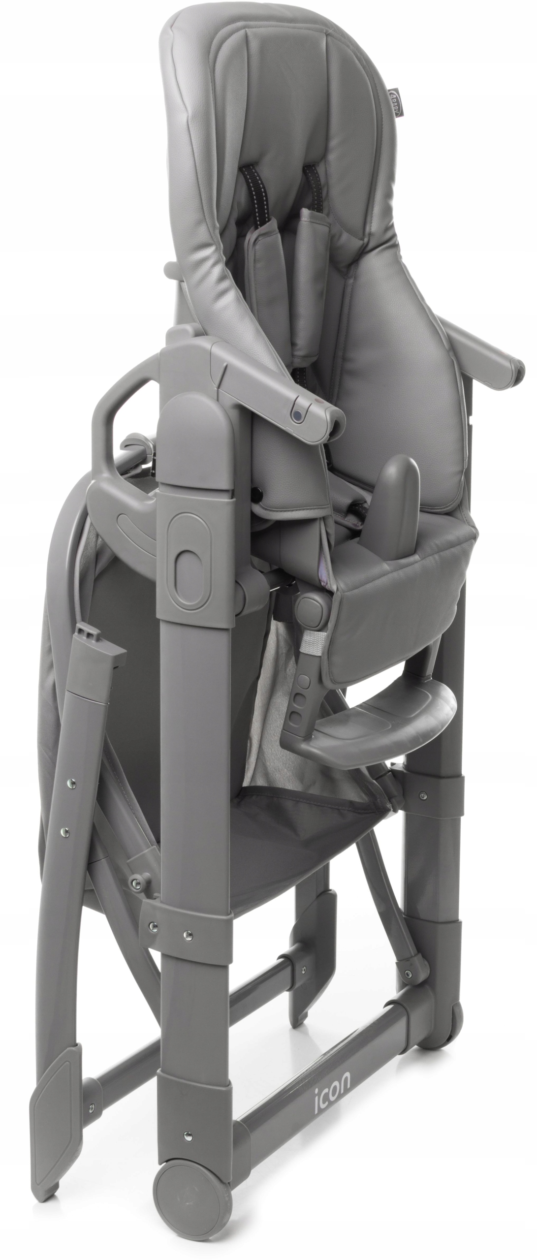 Icon — це універсальне крісло, яке можна використовувати з перших днів життя дитини як ергономічне крісло, а коли дитина почне сидіти самостійно, як зручне крісло. Зручні колеса дозволяють легко переміщати крісло, а сучасний дизайн і стримані кольори дозволяють Icon вписатися в будь-який інтер'єр. Завдяки широкому діапазону регулювань він може супроводжувати дитину до 3 років (максимум 15 кг). Дуже велике сидіння анатомічної форми забезпечує правильну поставу тіла. Його висоту можна регулювати в 6 положеннях за допомогою зручних ручок на спинці крісла. Для безпеки дитини крісло оснащене п'ятиточковими ременями безпеки з плечовими чохлами і додатковим елементом, що запобігає вислизання дитини з крісла. Спинка крісла має чотири ступені регулювання та розкладається до лежачого положення, поєднується з регулюванням підніжки як по горизонталі, так і по вертикалі, що дозволяє індивідуально підлаштувати крісло відповідно до віку дитини.