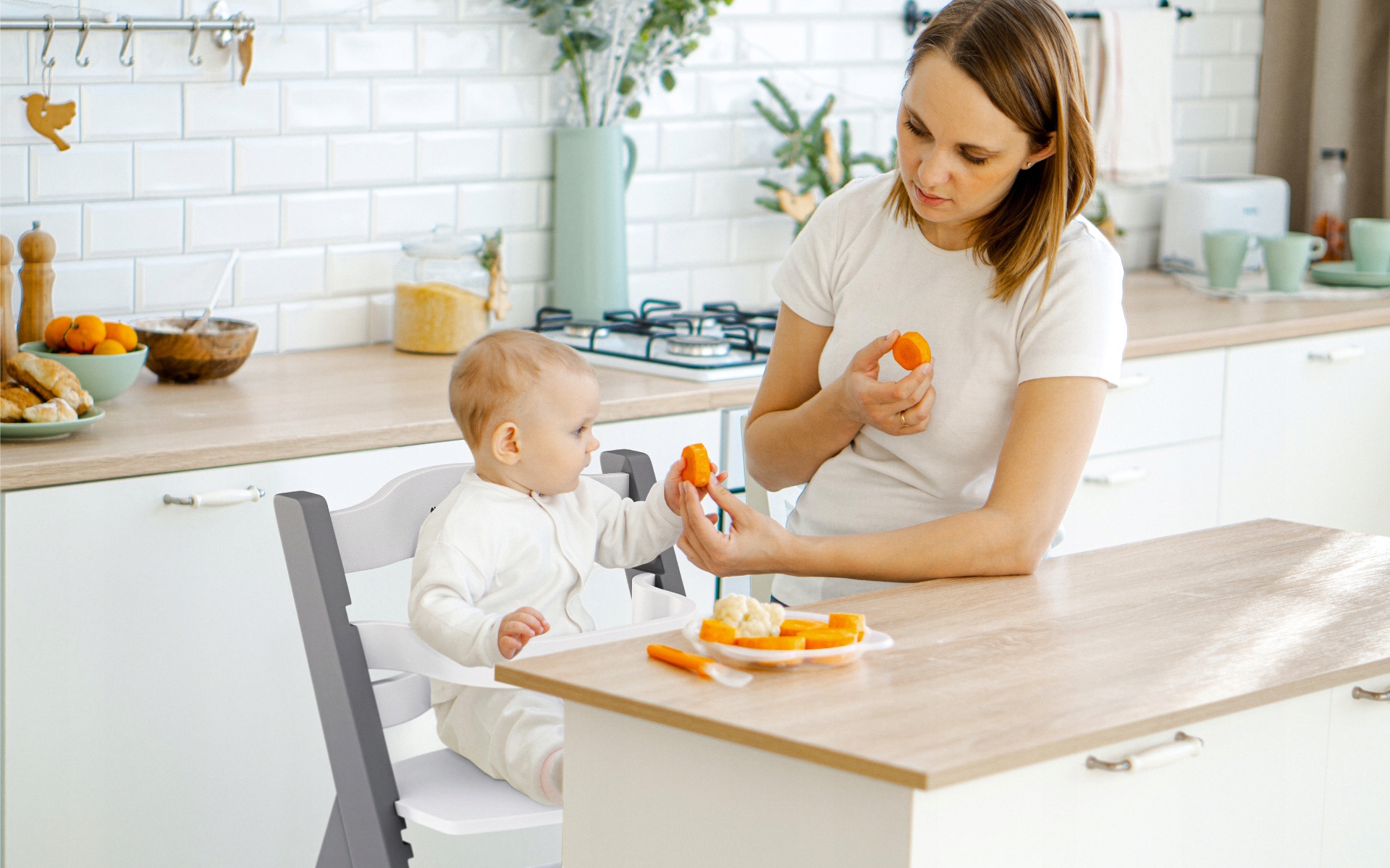 - 2. Дитячий стільчик за столом: після того, як зняли тацю, Шматок 40 можна поставити на стіл, завдяки чому дитина може брати активну участь у сімейних обідах.