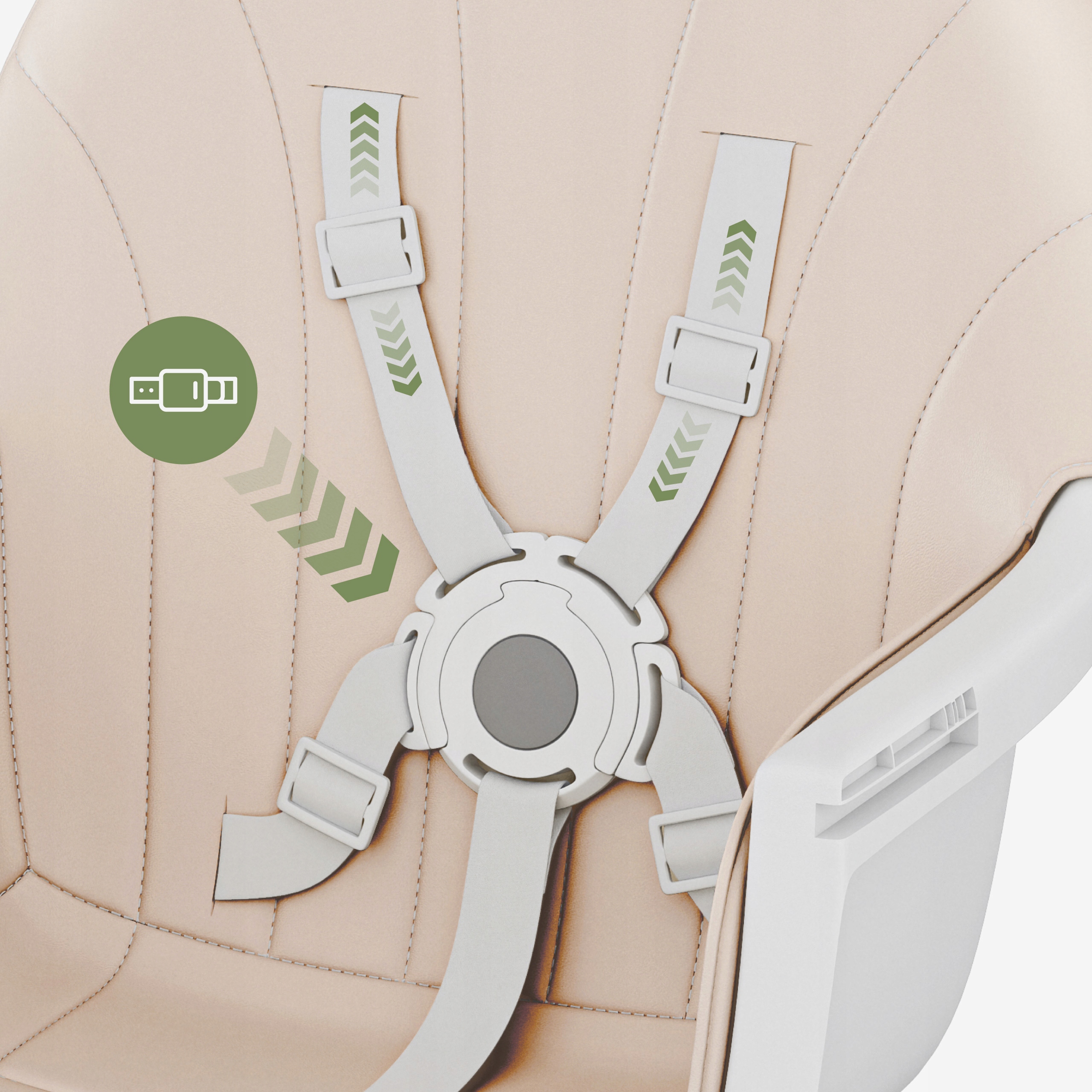- Регульовані 5-точкові ремені безпеки, які можна регулювати відповідно до пози дитини.