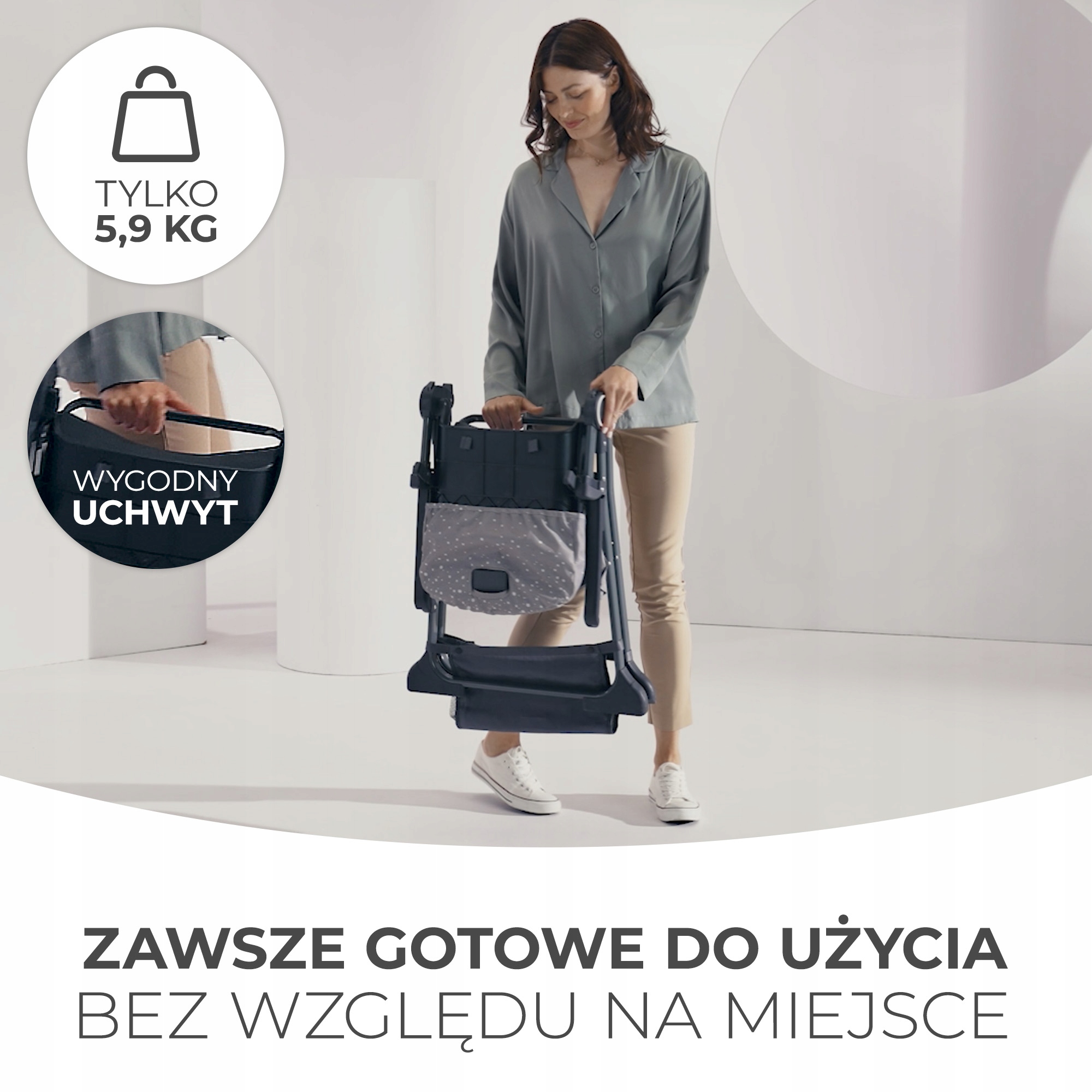 FOLDEE виготовлено з матеріалу, який легко чистити. Ви легко відмиєте навіть найстійкіші плями зі стільця. FOLDEE також оснащений 5-точковими ременями, які можна регулювати, а при необхідності зняти та випрати. У крісла також є кошик під сидінням - в нього можна сховати дрібниці, наприклад соску або вологі серветки.