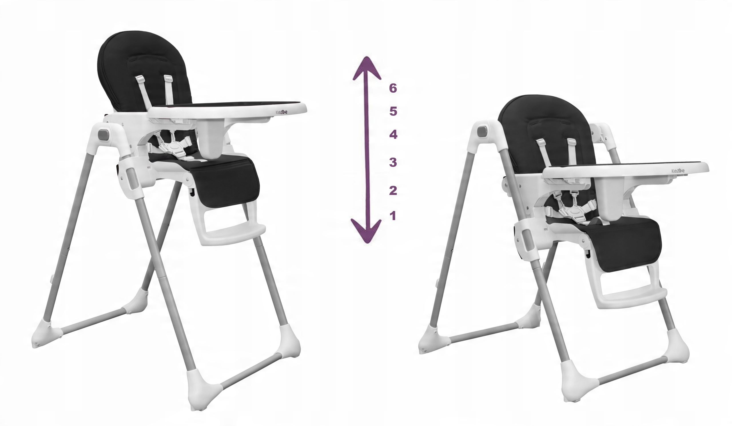 - 2 - плавне горизонтальне регулювання лотка - дозволяє регулювати відстань лотка від дитини