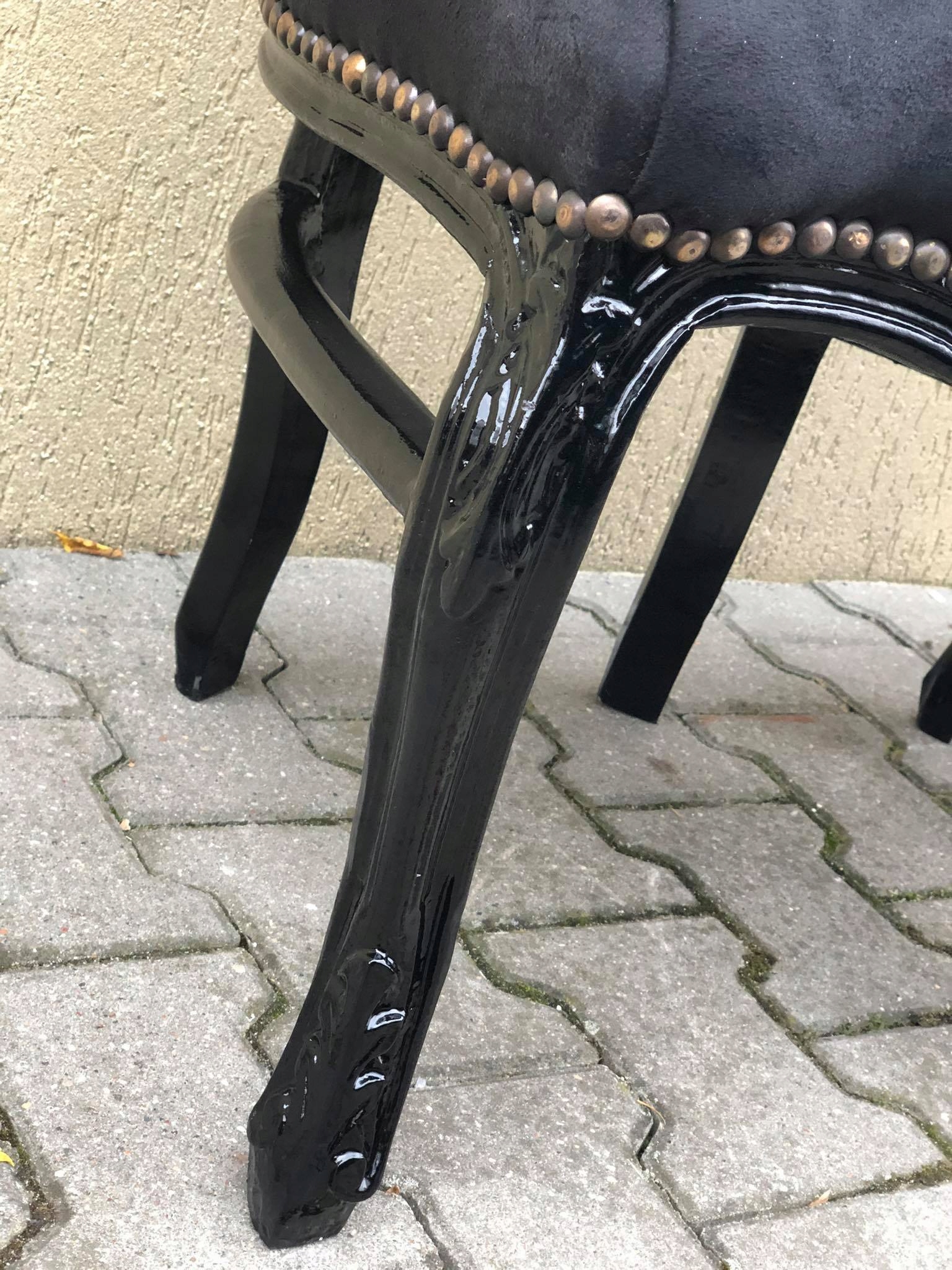 СТІЛЬЦІZ ЧОРНИЙ ОКСАМИТ ОББИВКА ТА РІЗЬБЛЕНІ ЧОРНІ ДЕРЕВ’ЯНІ КОРОНИ.