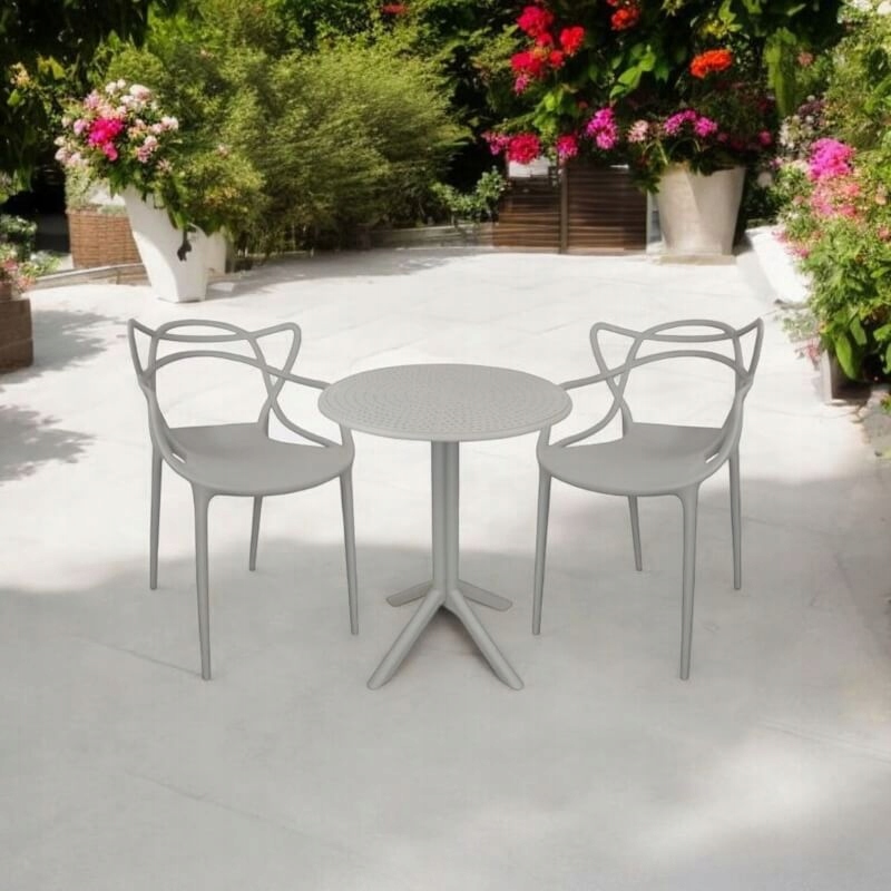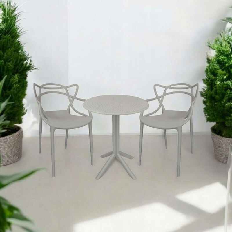 це пропозиція для людей, які цінують простий, але виразний дизайн. Завдяки міцній конструкції та ажурній спинці ця модель ідеально підходить як для сучасних інтер'єрів, так і для відкритих просторів - балкона, тераси або саду.