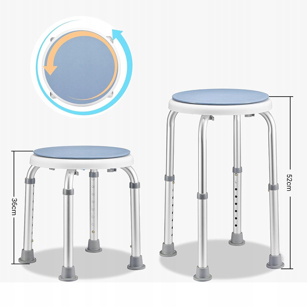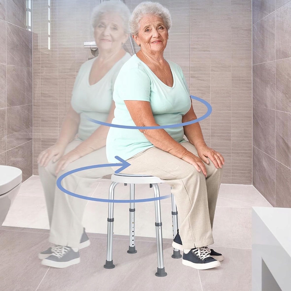 360 ° обертання робить табурет придатним для різних застосувань, таких як ванні кімнати, кухні та вітальні, що робить його особливо корисним для людей з обмеженою фізичною ефективністю.