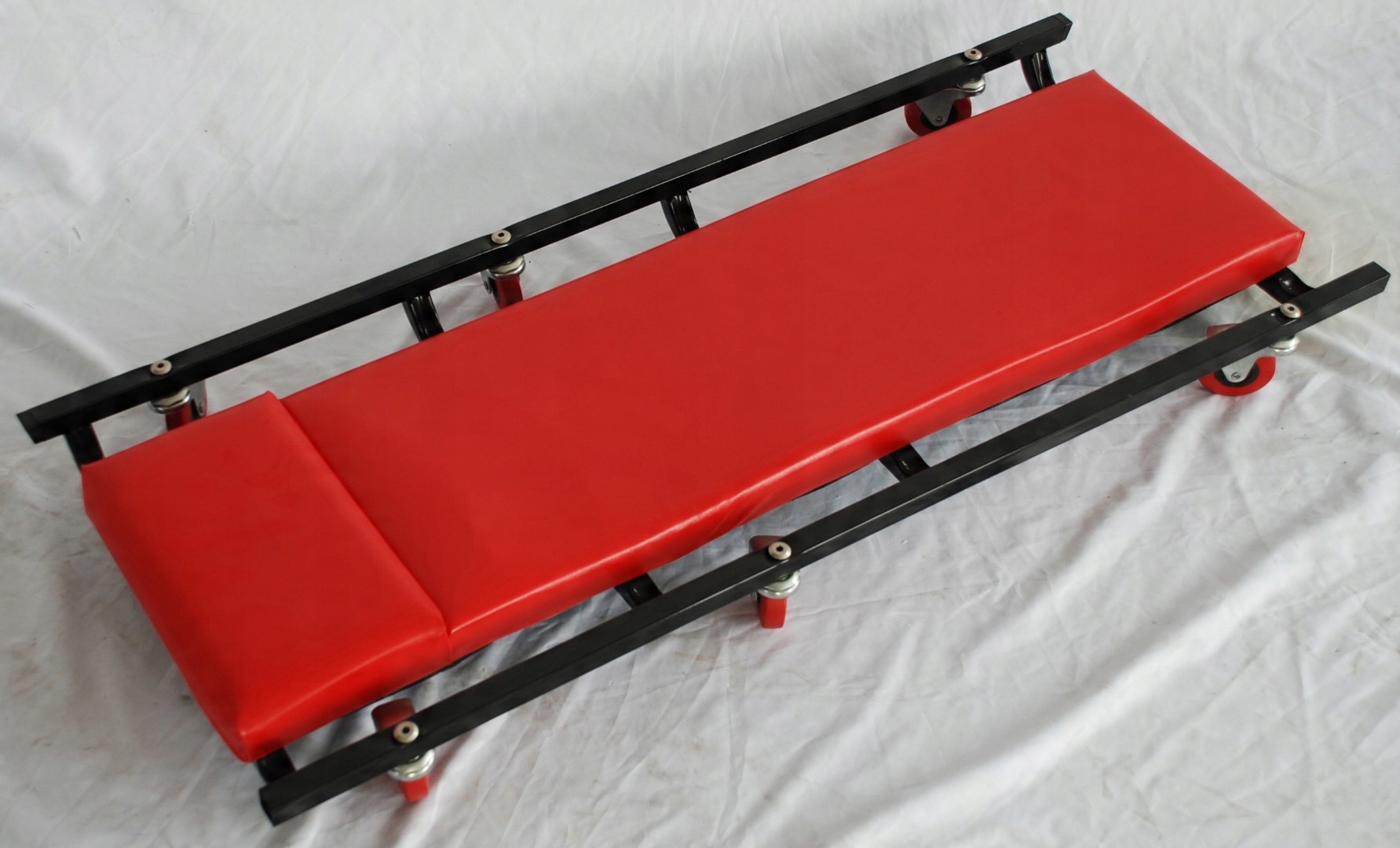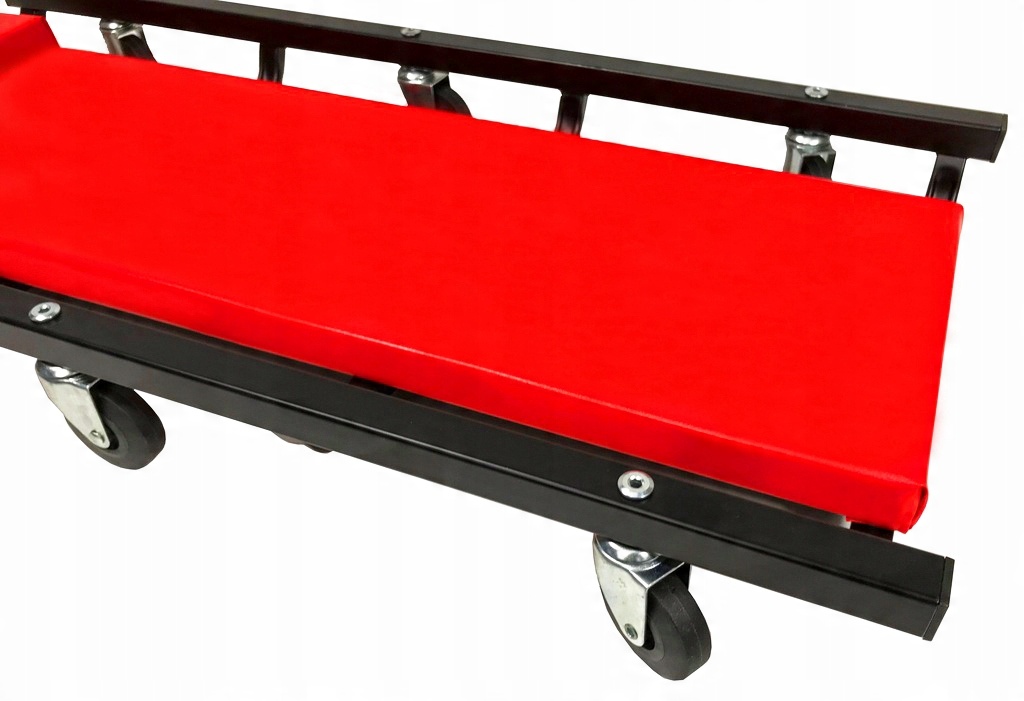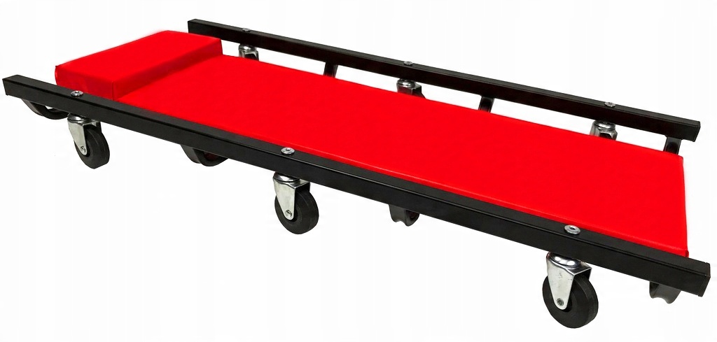 Металева конструкція кушетки для майстерні робить її незамінним елементом обладнання автомайстерні. Конструкція кушетки майстерні заснована на 6 гумових опорних колесах, які дозволяють пересуватися в будь-якому напрямку.