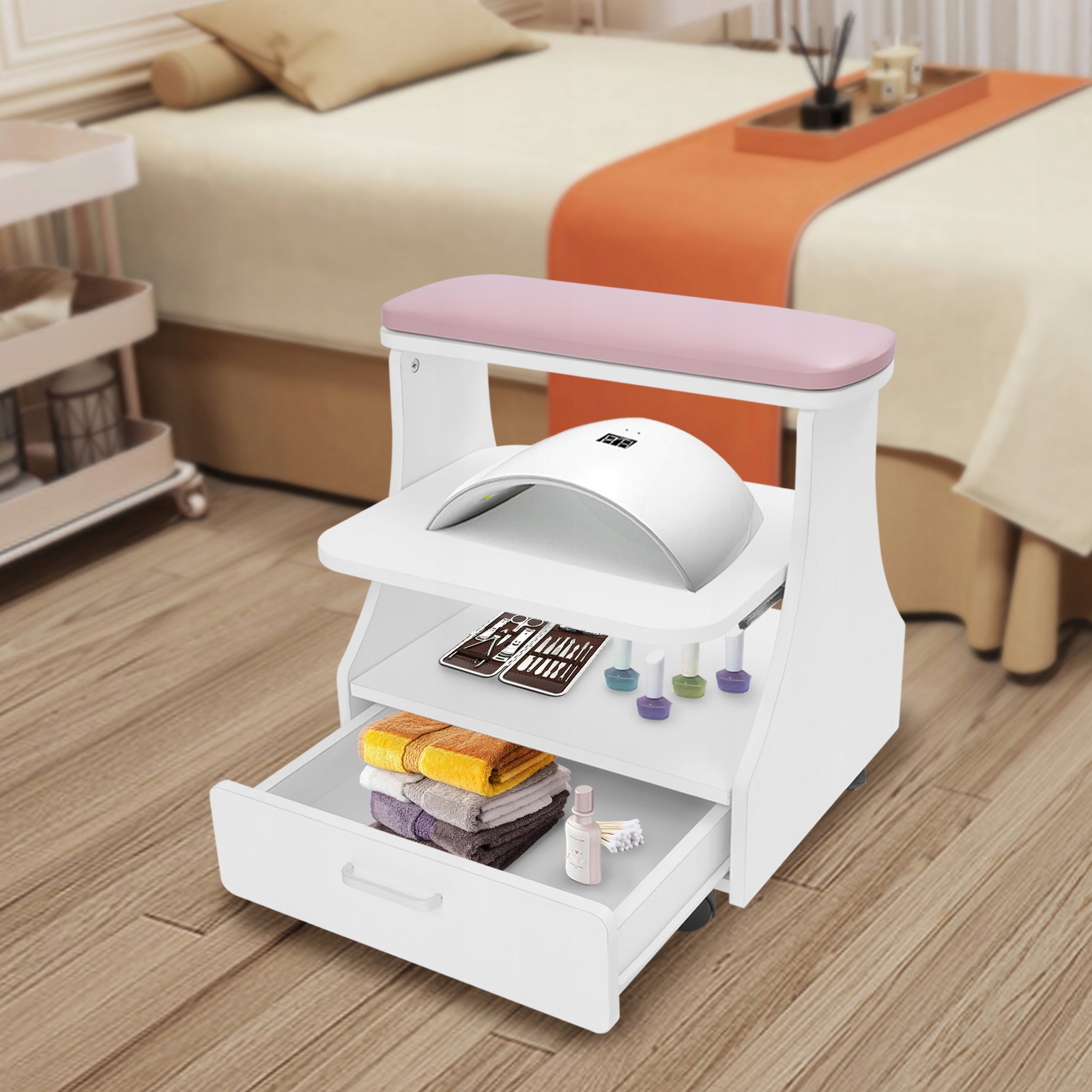 ◾Цей візок для манікюру і педикюру стане чудовим помічником і прекрасним доповненням до вашого манікюрного салону. Він виготовлений з високоякісних матеріалів і має компактну конструкцію, що робить його міцним, міцним і простим у чищенні. Чотири зручні колеса дозволяють легко і швидко переміщатися в обмеженому просторі. Крім того, він має трирівневу конструкцію, щоб забезпечити вам додатковий простір для зберігання та комфорт під час роботи.