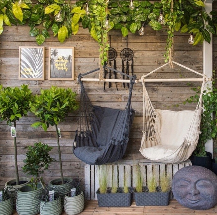 Встановлено наміцні струни - ідеальне рішення, коли немає місця для підвішування класичний гамак.
