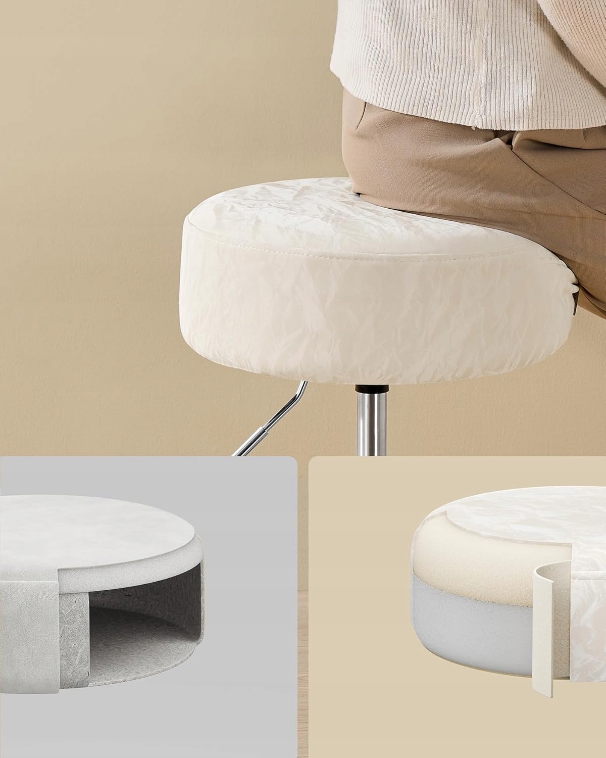 елегантна та стильна: Цей табурет має поліуретанову поверхню з візерунком, натхненним льодом і зручна. Незалежно від того, чи використовуєте ви його на туалетному столику чи на кухні, він додасть елегантний акцент