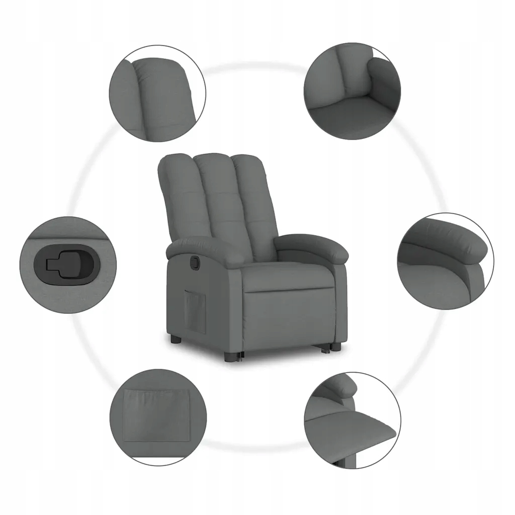 Крісло для пенсіонерів з функцією підйому, темно-сіре, 70x93x101 см