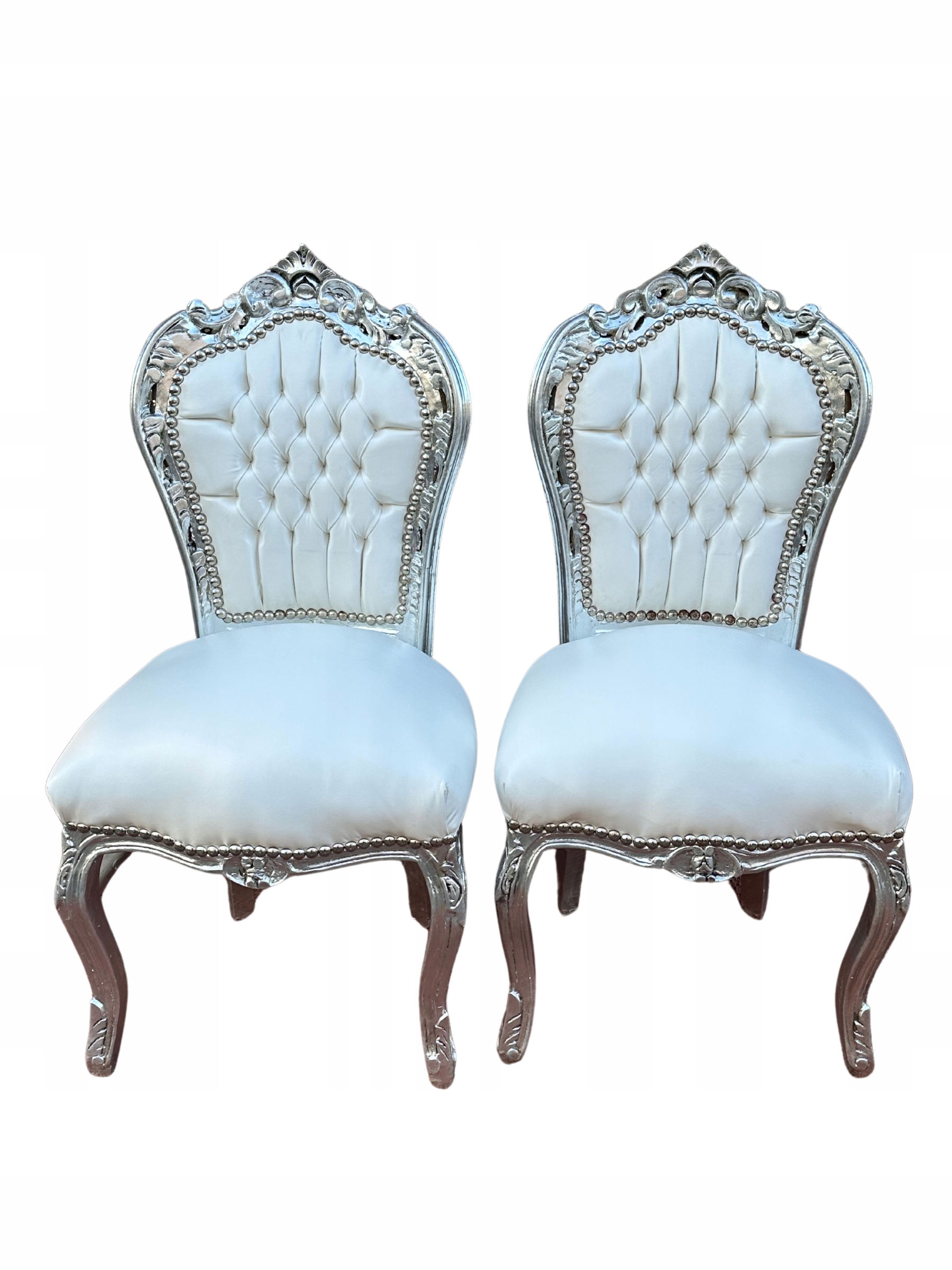 З БІЛОЮ ОБбивкою З ЕКОШКІРИ ТА РІЗЬБЛЕНИМИ ДЕРЕВ'ЯНИМИ КОРОНАМИ СРІБЛИСТОГО КОЛЬОРУ.