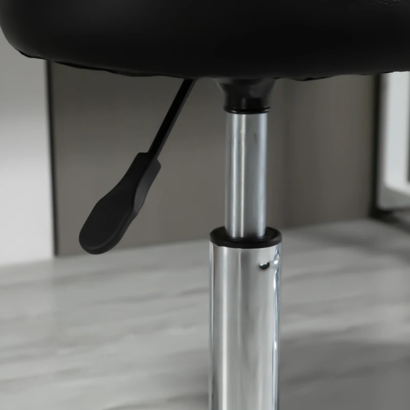 Металева підніжка забезпечує комфорт і зручність сидіння, а завдяки плавному пневматичному регулюванню висоти сидіння можна регулювати табурет відповідно до ваших уподобань.