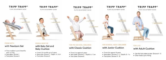 STOKKE TRIPP TRAPP® був розроблений в 1970-х роках і став хітом на ринку дитячих товарів. Завдяки цьому дитині зручно сидіти за столом. Регульована глибина і висота сидіння дозволяє легко встановити виріб на будь-якому столі. Зручне сидіння і підніжка забезпечують правильне положення при сидінні. У нашій пропозиції є стілець у багатьох доступних кольорах - як для дівчаток, так і для хлопчиків.