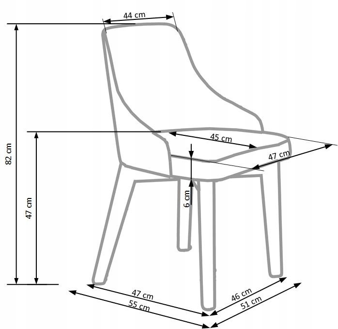 Сучасний стілець з дерев'яними ніжками. Обшита тканиною модних кольорів. Характеризується цікавим дизайном, який ідеально вписується в сучасні аранжування.