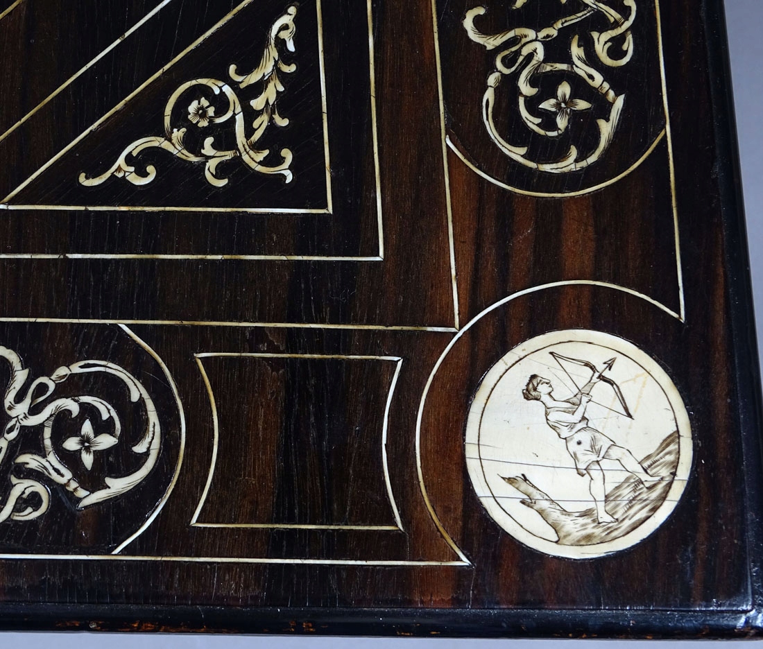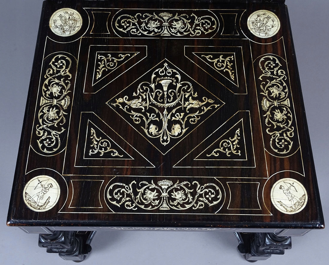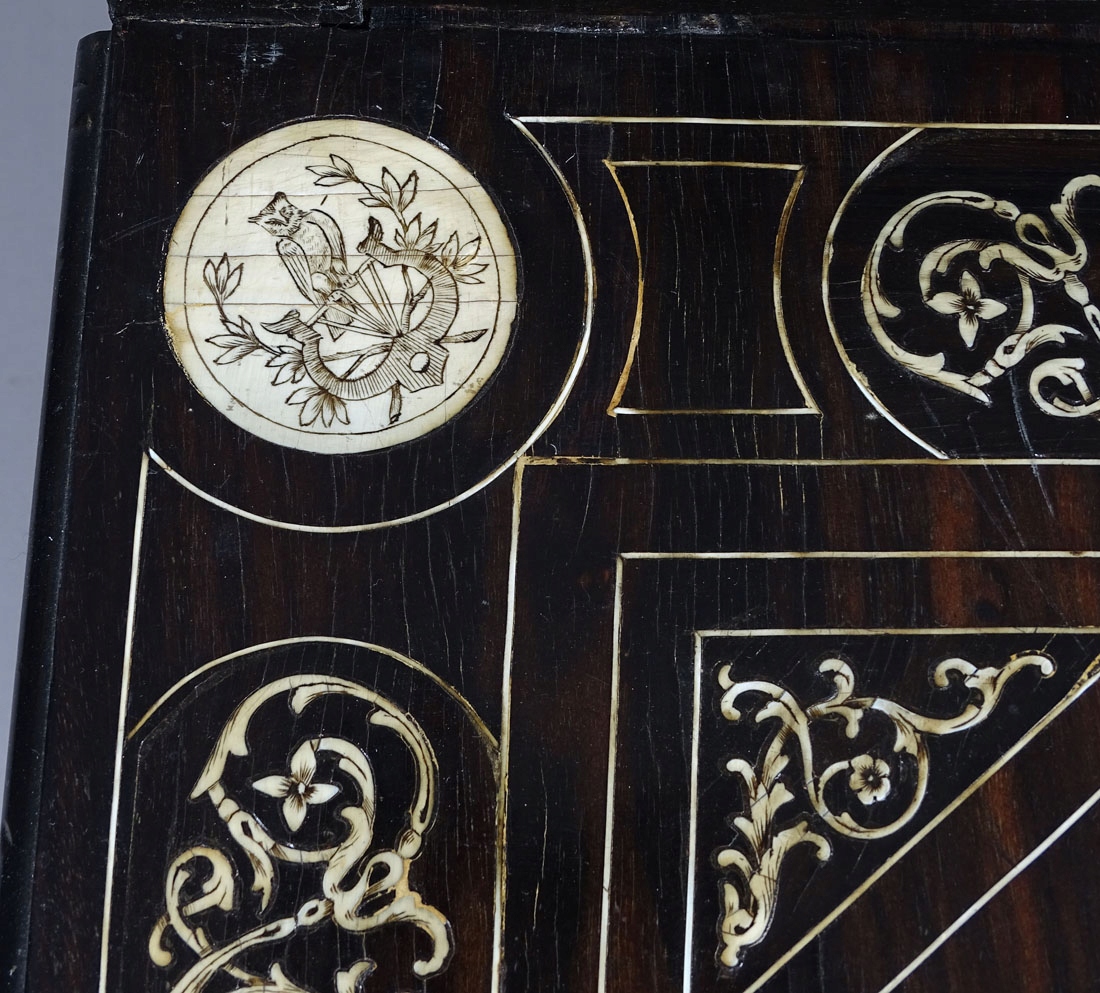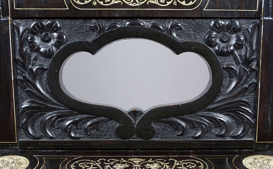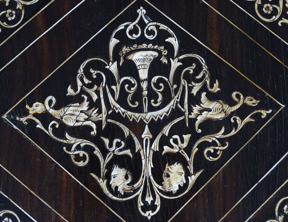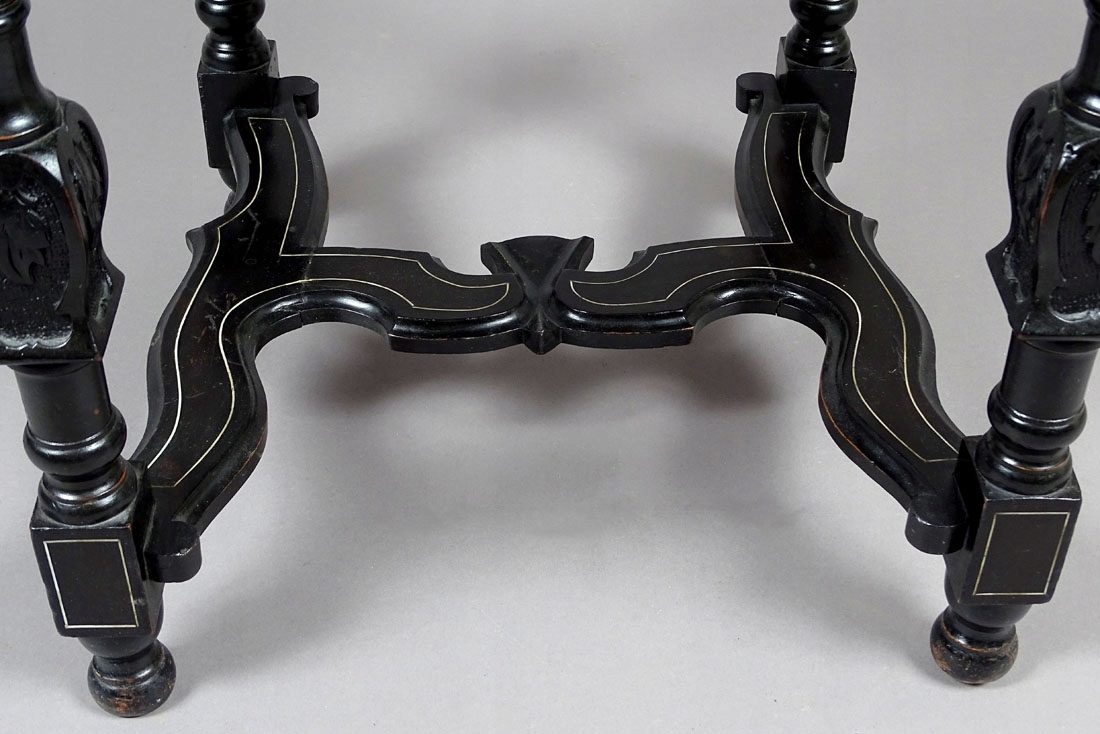 Конструкція: хвойна деревина, шпон чорного дерева, різьба по дереву, маркетрі з кістки, друга половина 19 ст.