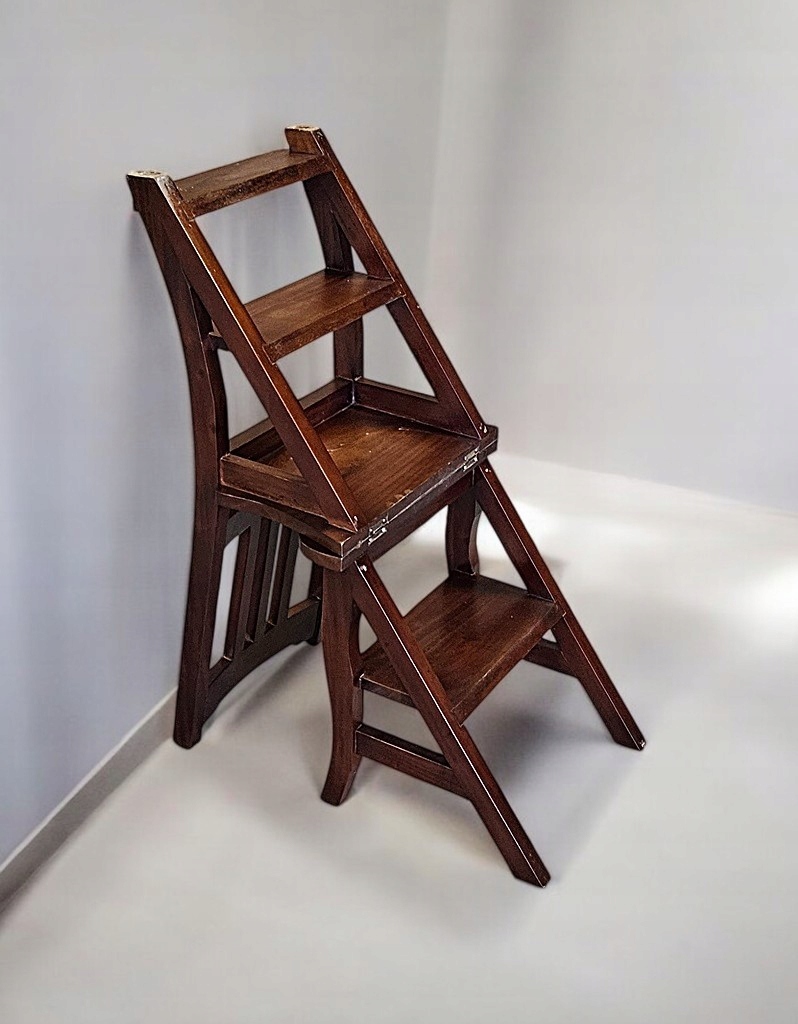 Крісло як драбина виконує дві функції. Ви можете використовувати предмет меблів як драбину, напр. для домашньої бібліотеки, або як стандартне крісло, щоб випити чашку кави. Предмет меблів повністю дерев'яний, в хорошому стані з виставки - ДУЖЕ РЕКОМЕНДУЮ.