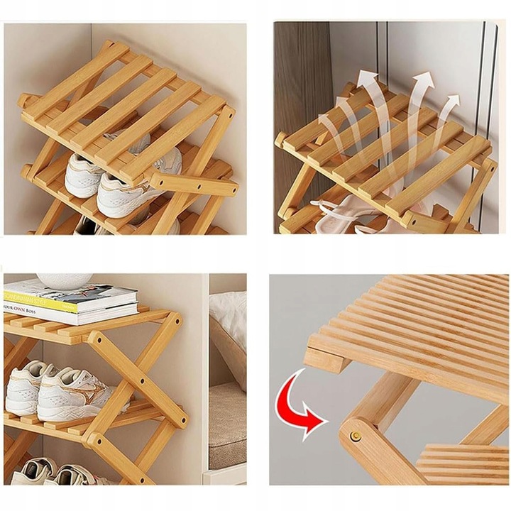 СТІЛКА ДЛЯ ВЗУТТЯ СКЛАДНА, 4 РІВНІ, СТІЛКА ДЛЯ ВЗУТТЯ З БАМБУКУ, СТІЛКА ДЛЯ ВЗУТТЯ