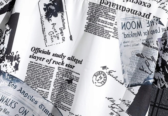Стильна чоловіча біла сорочка з коротким рукавом, візерунком з модними написами