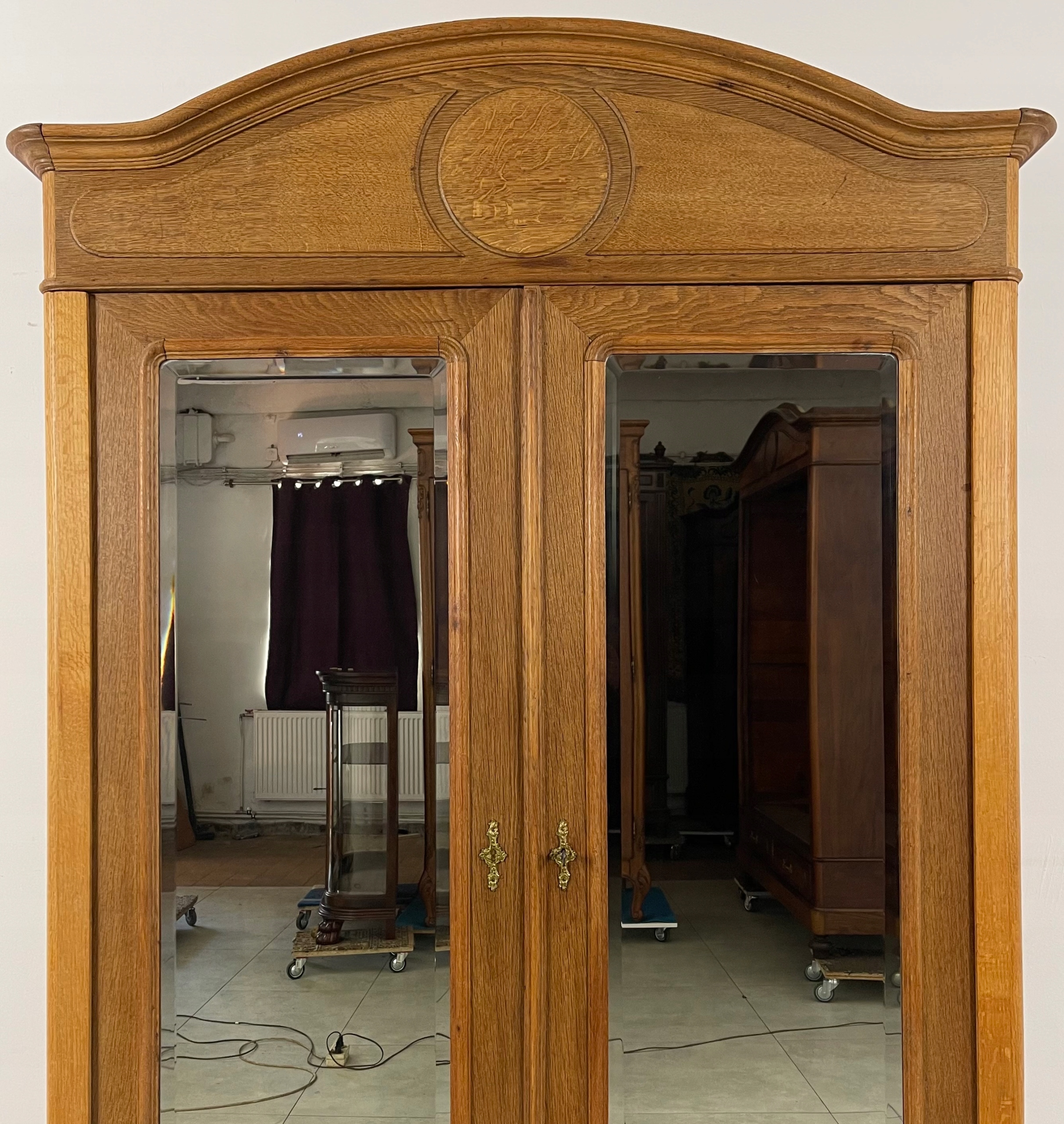 СТИЛЬНА ДУБОВА ДВОСПІЛЬНА ШАФА З ДЗЕРКАЛОМ МАСИВ ДУБА ФРАНЦІЯ 1543