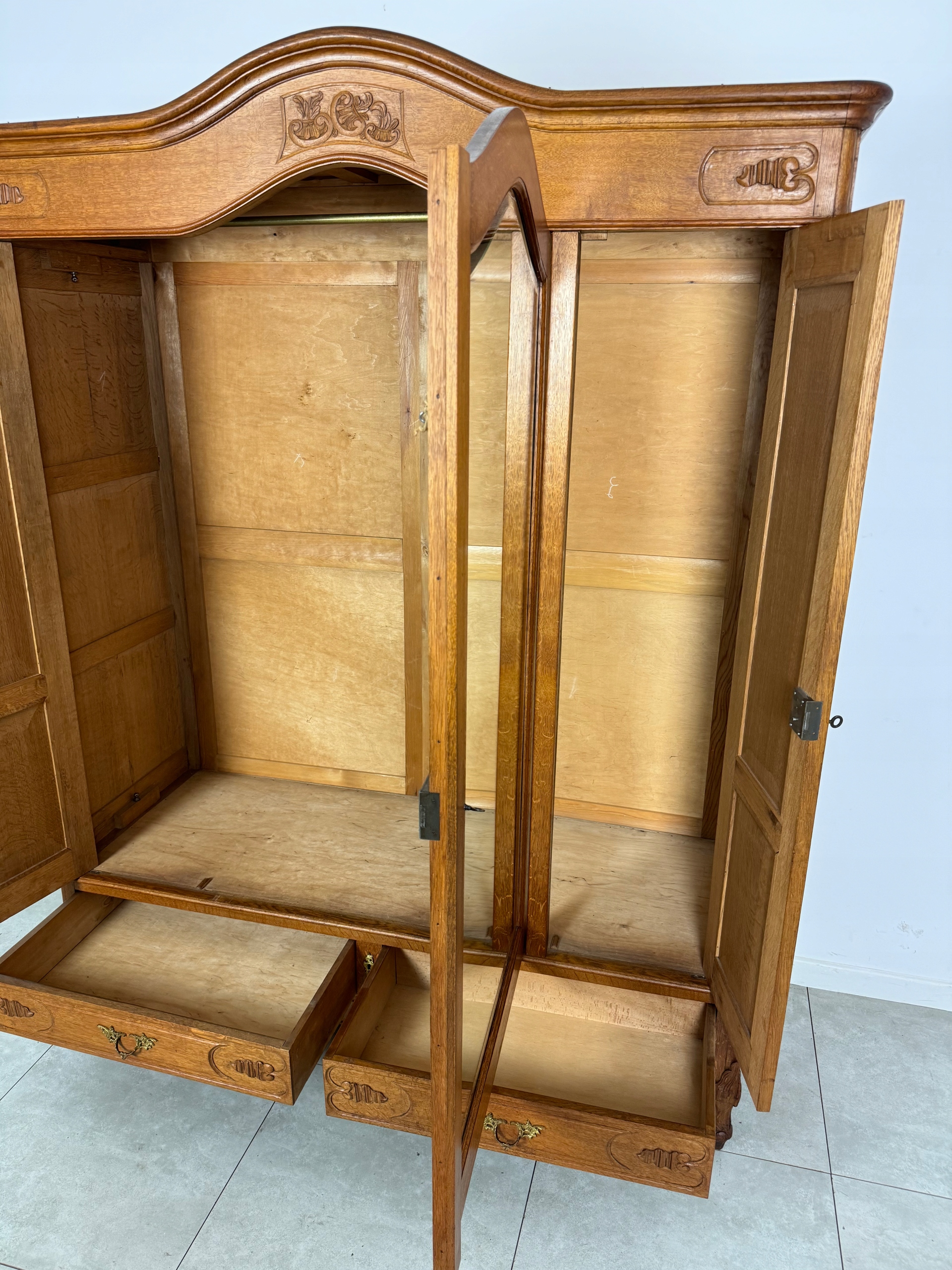 СТИЛЬНА ДУБОВА ТРИДВЕРНА ШАФА З ДЗЕРКАЛОМ LUDWIK FRANCE 791