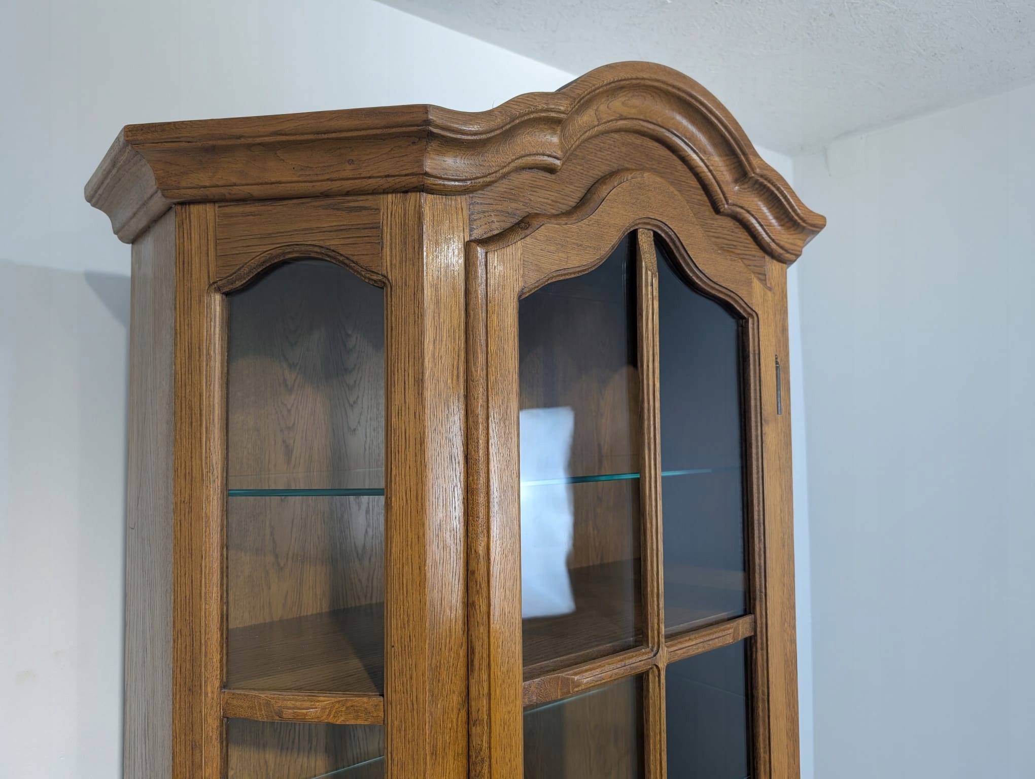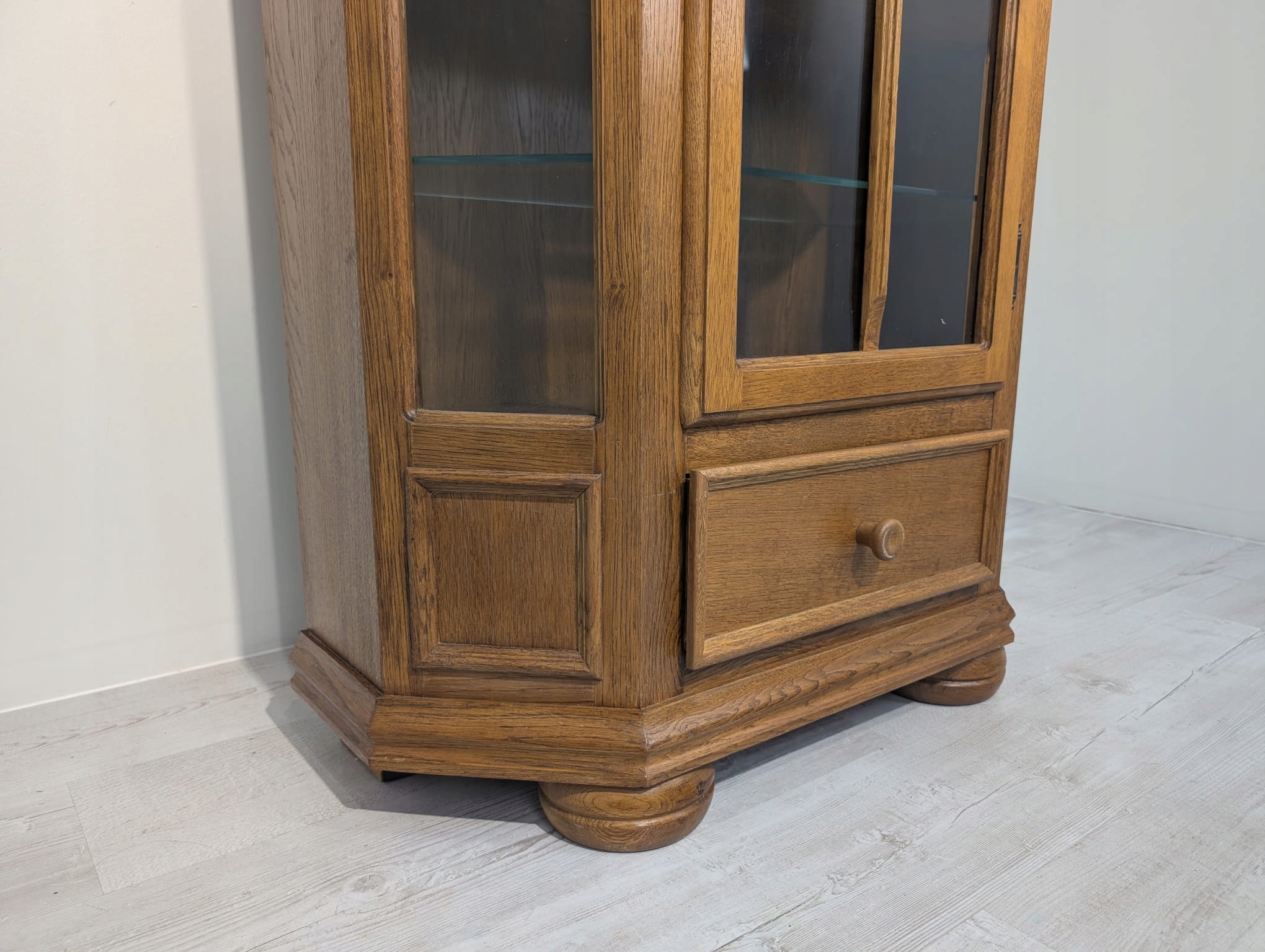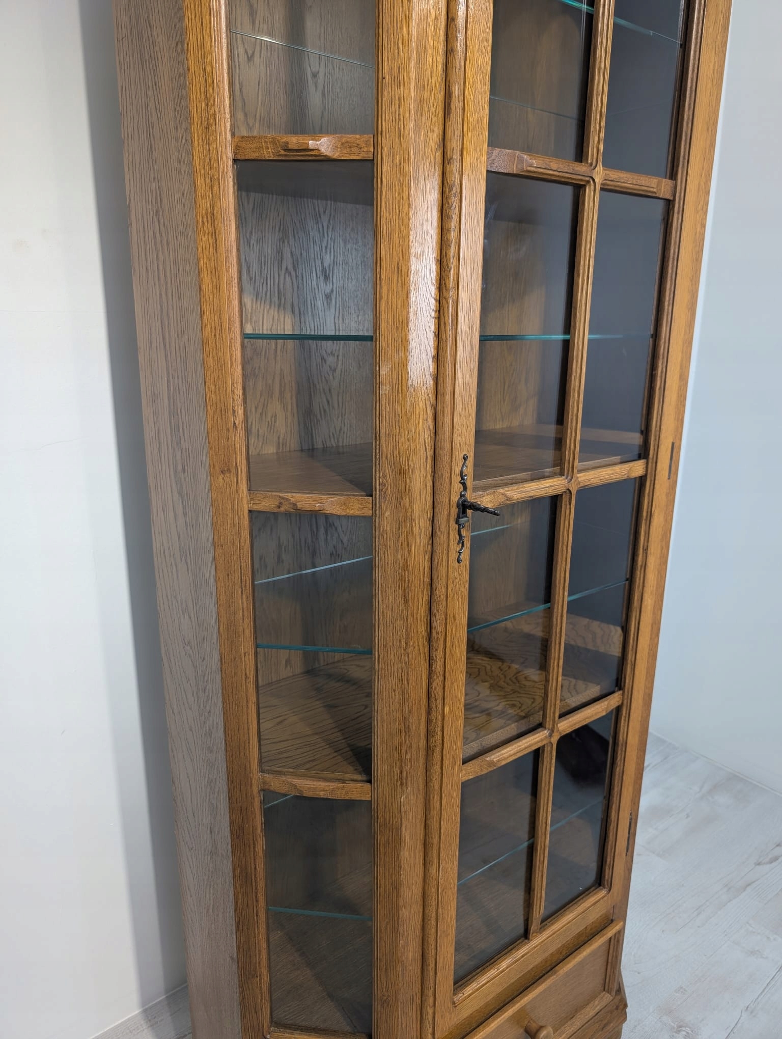 Стильна дубова вітрина. Виготовлений з високоякісної деревини дуба, він забезпечує довговічність і елегантний зовнішній вигляд. Ідеально підходить як прикраса або практичне місце для зберігання речей.