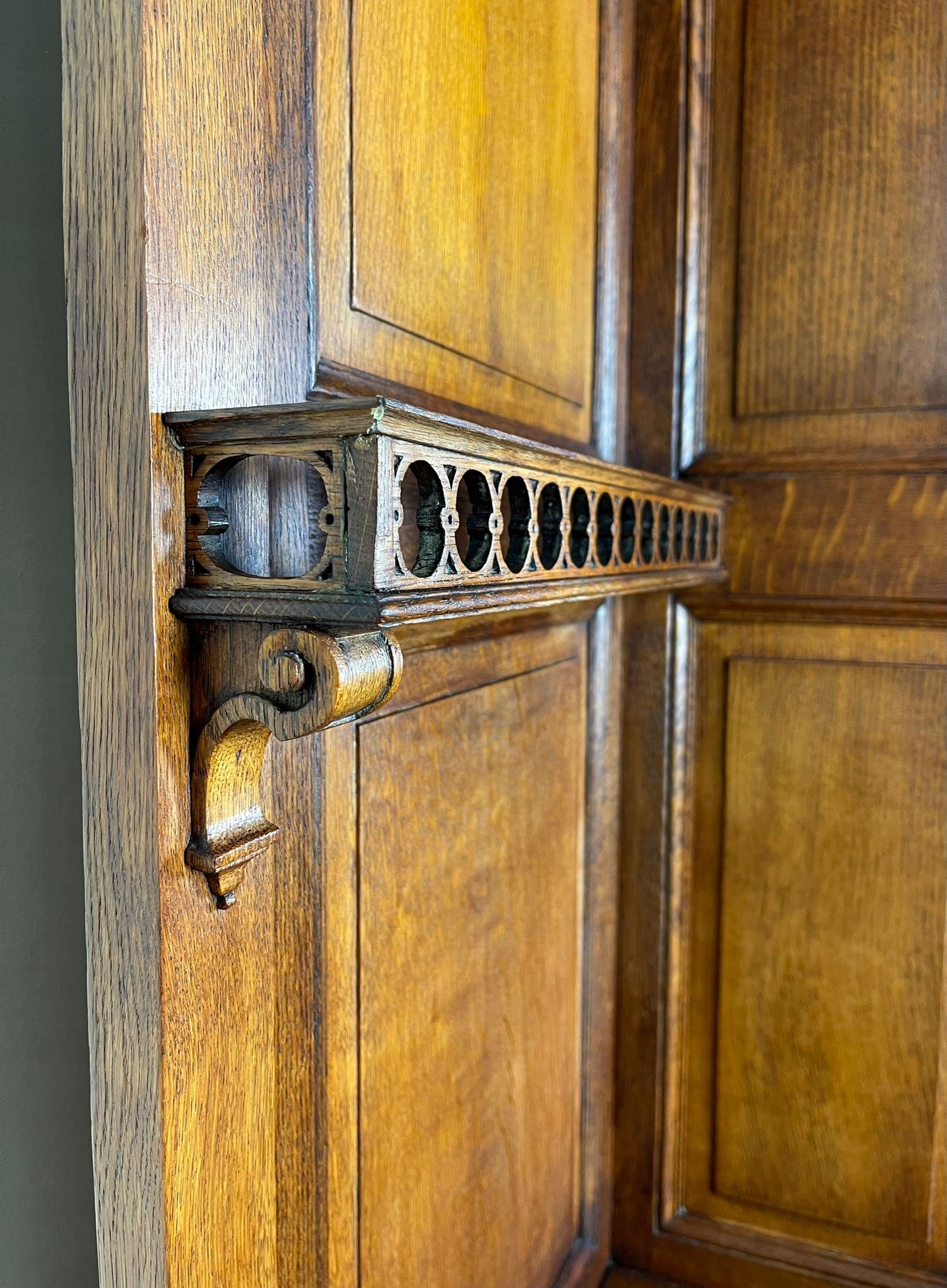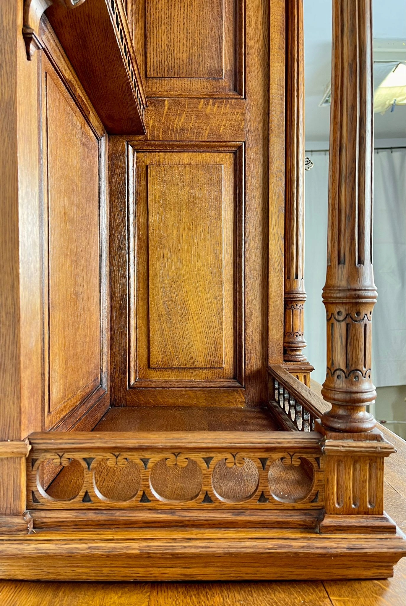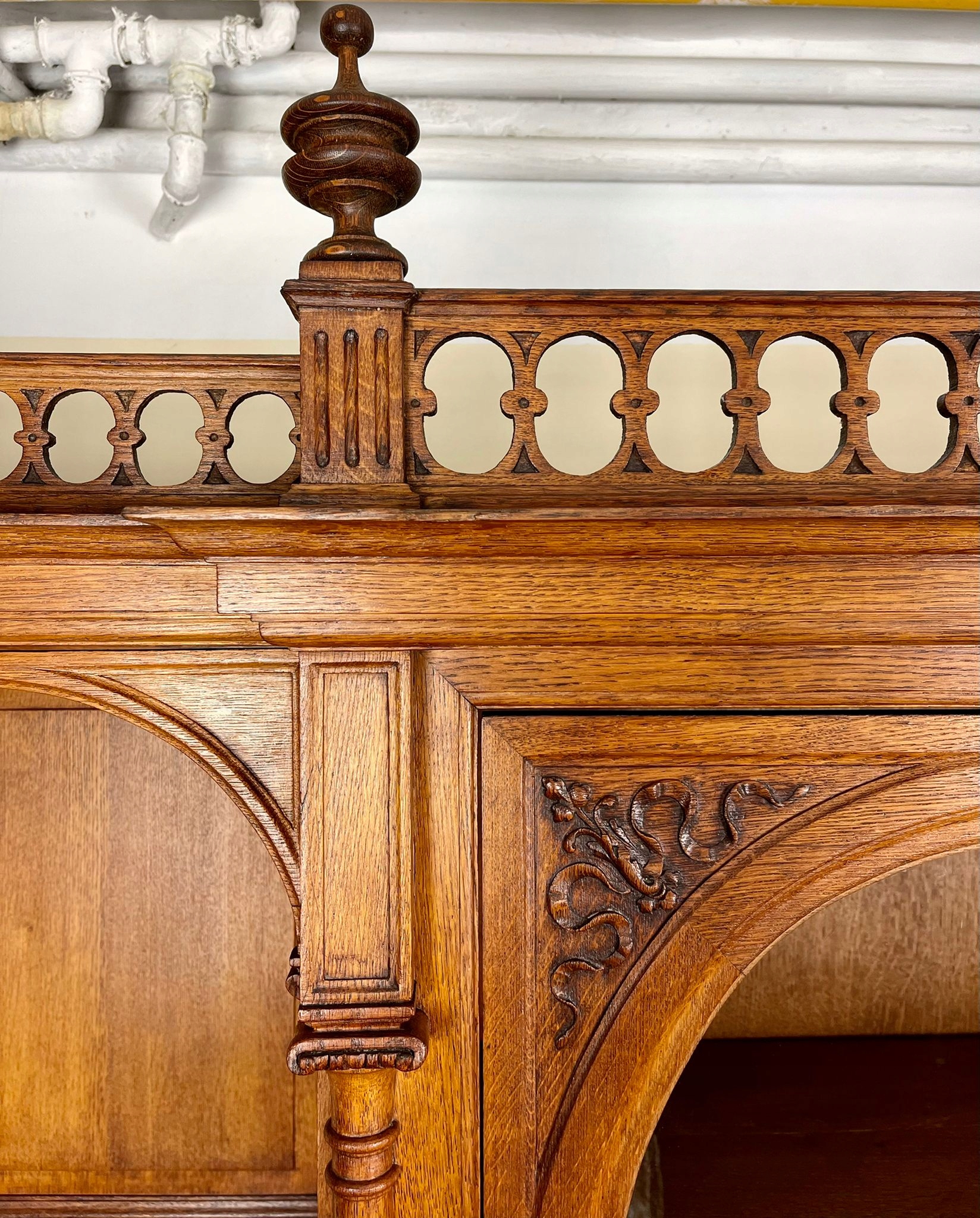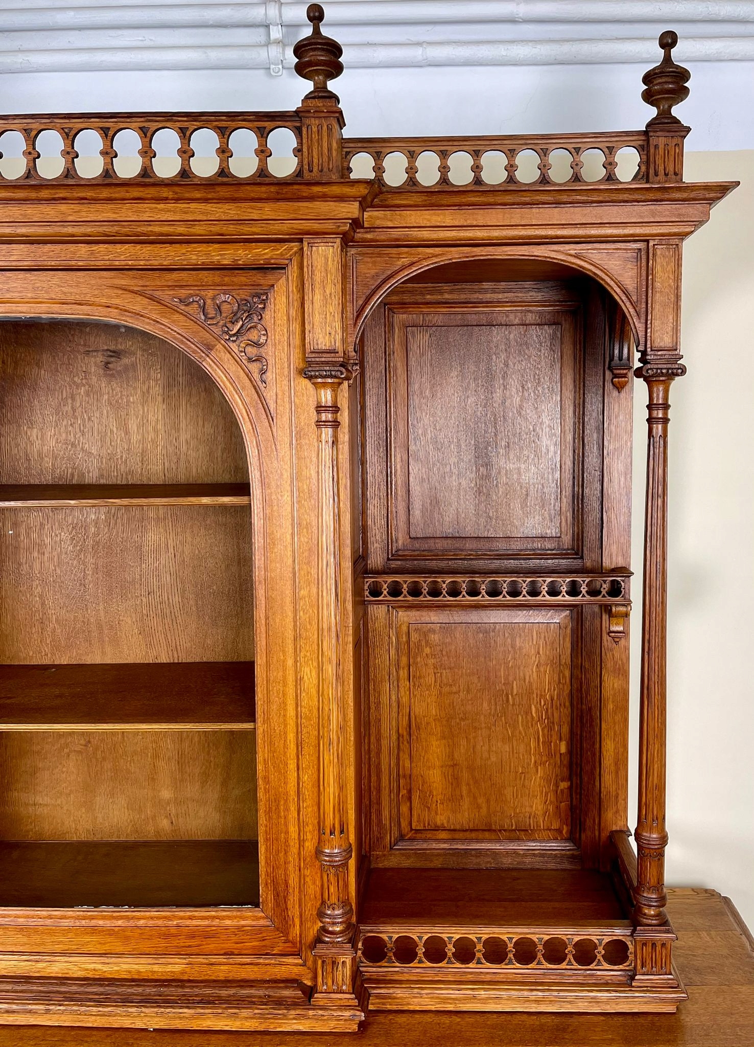 Красива, стильна тумба в стилі неоренесанс з масиву дуба. Він був виготовлений у Франції приблизно в 1900 році. Він прикрашений численним різьбленням, водяними знаками і численними колонами, що характеризують красу минулих епох. Меблі зберегли всі оригінальні покриття та знаходяться в дуже хорошому стані. Оригінальне рулонне скло. У серванті є всі ключі. Деталі на фото.