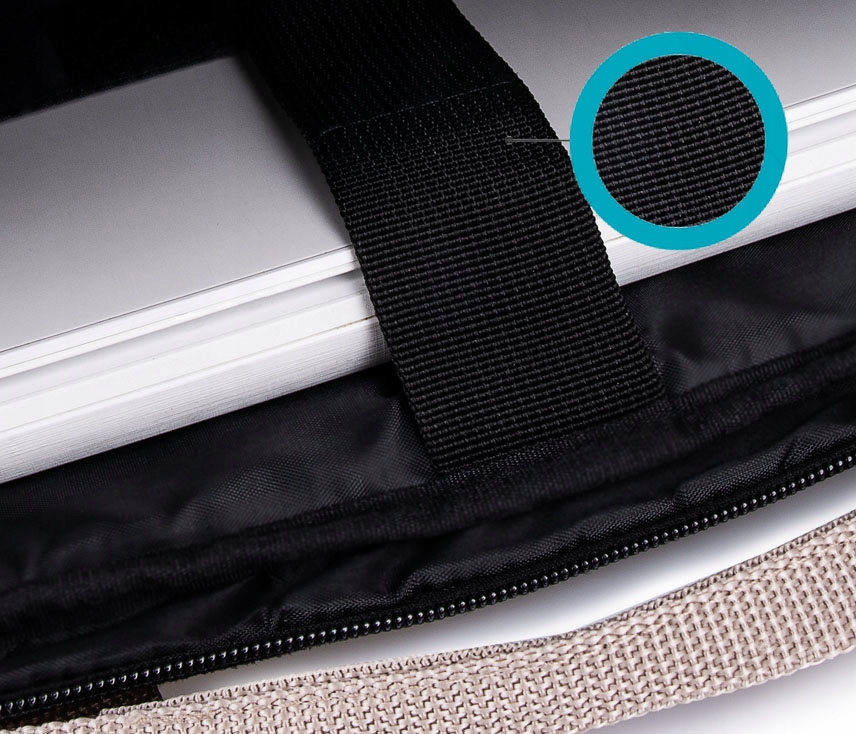 - Він має застібку-липучку, яка утримує ноутбук в одному положенні