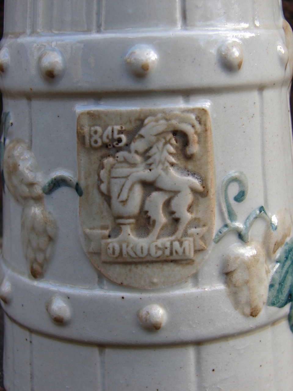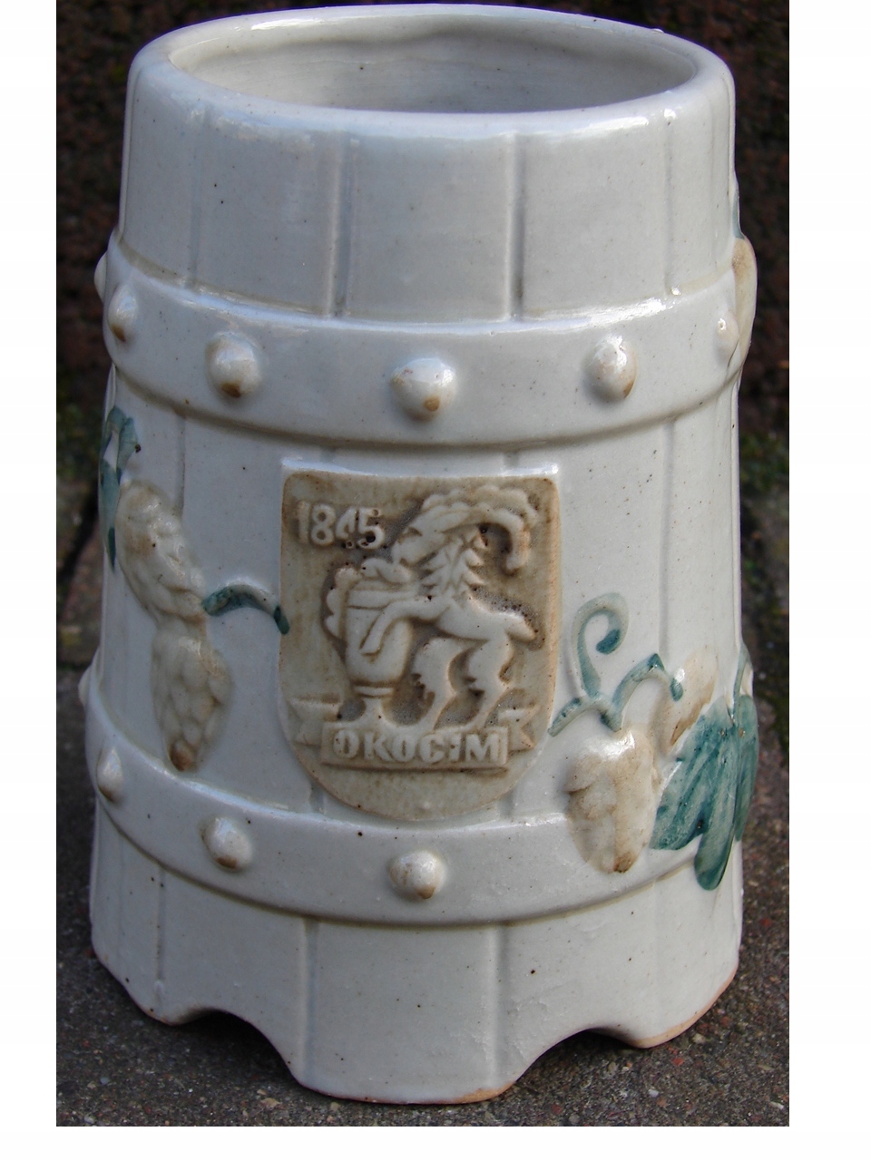 Керамічна кухоль Okocim, виконана в стильній декоративній формі.
