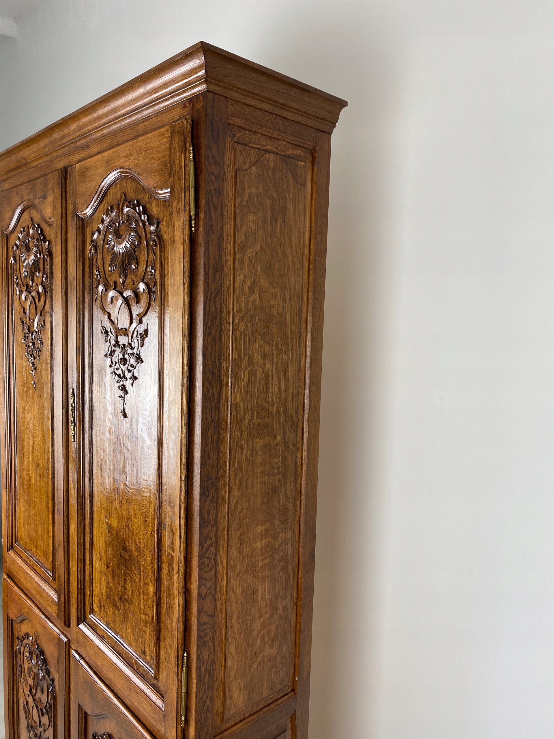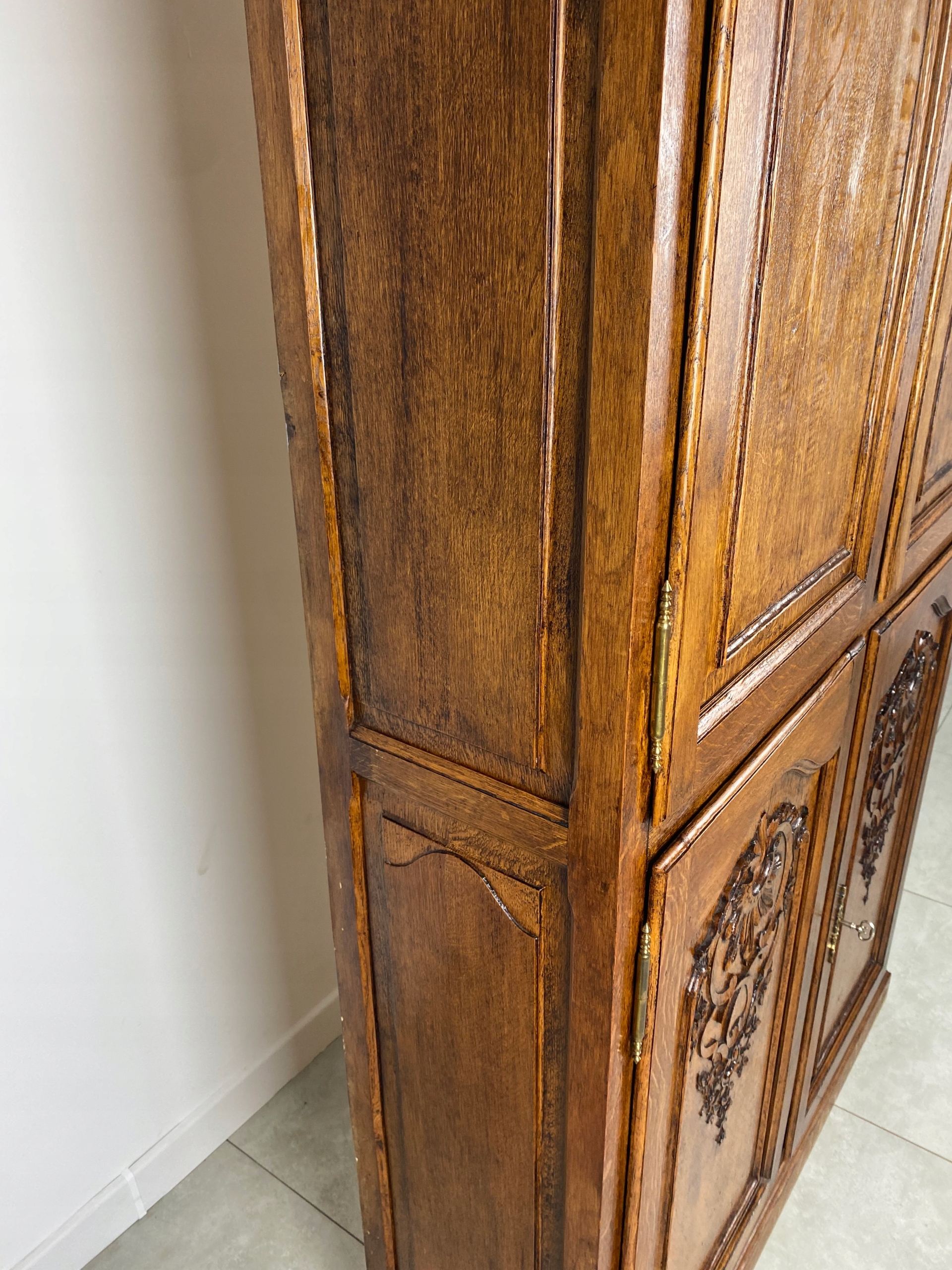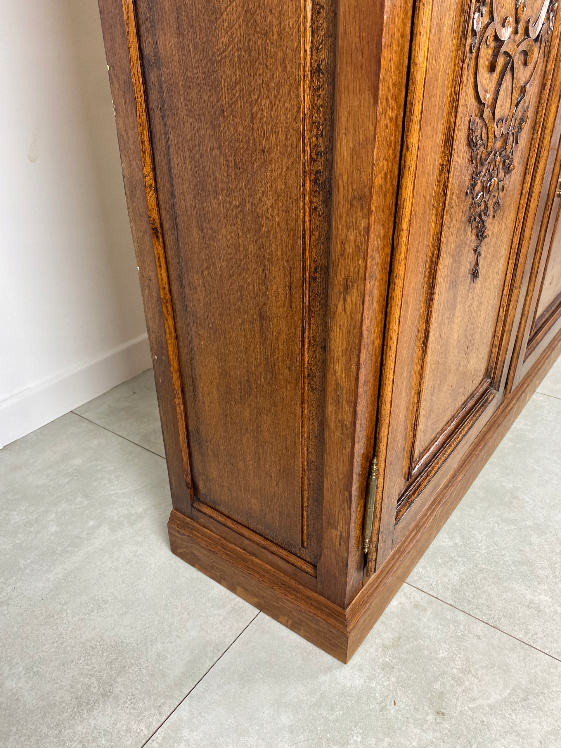 Комод простої форми, прикрашений красивою різьбою. Він дуже масивний і міцний.