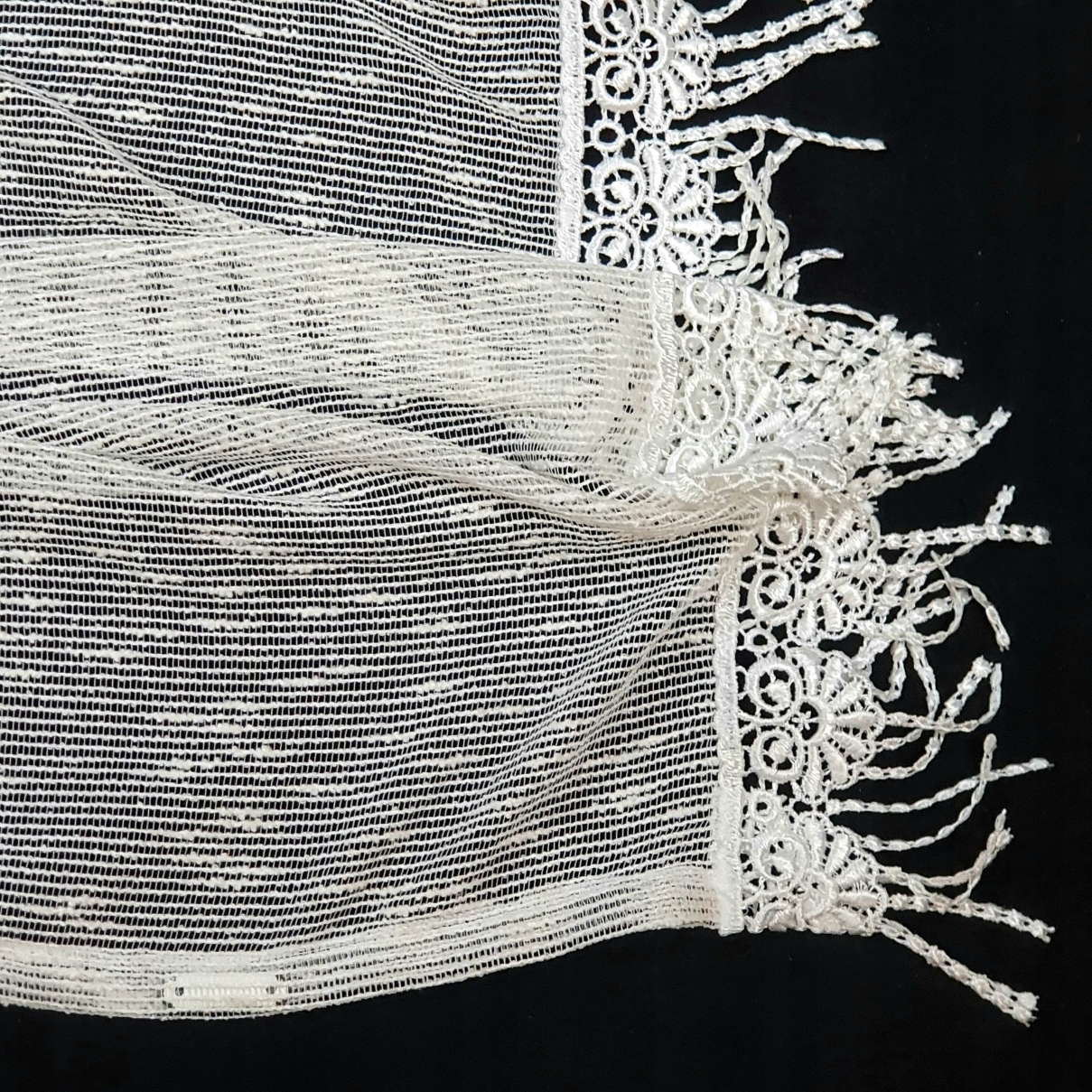 ГОТОВА СТИЛЬНА БІЛА ШТОРА З ГІПЮРОВИМ МЕРЕЖИВОМ.
