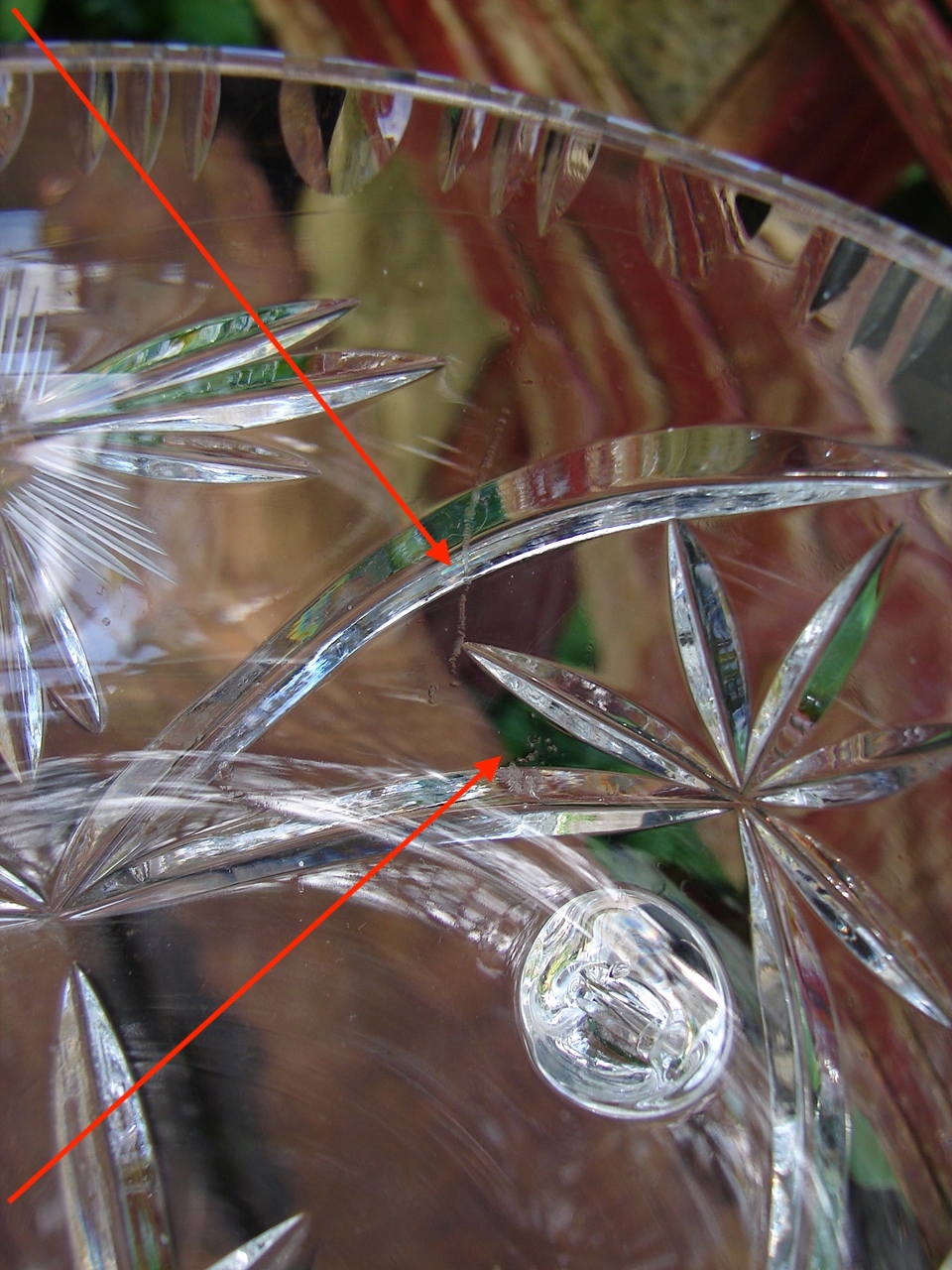 Товар, добре збережена, тріщини, відколи, тільки всередині тарілки є локальні подряпини, які не впливають на зовнішній вигляд та використання. У збільшеному вигляді місце дефекту показано червоними стрілками.