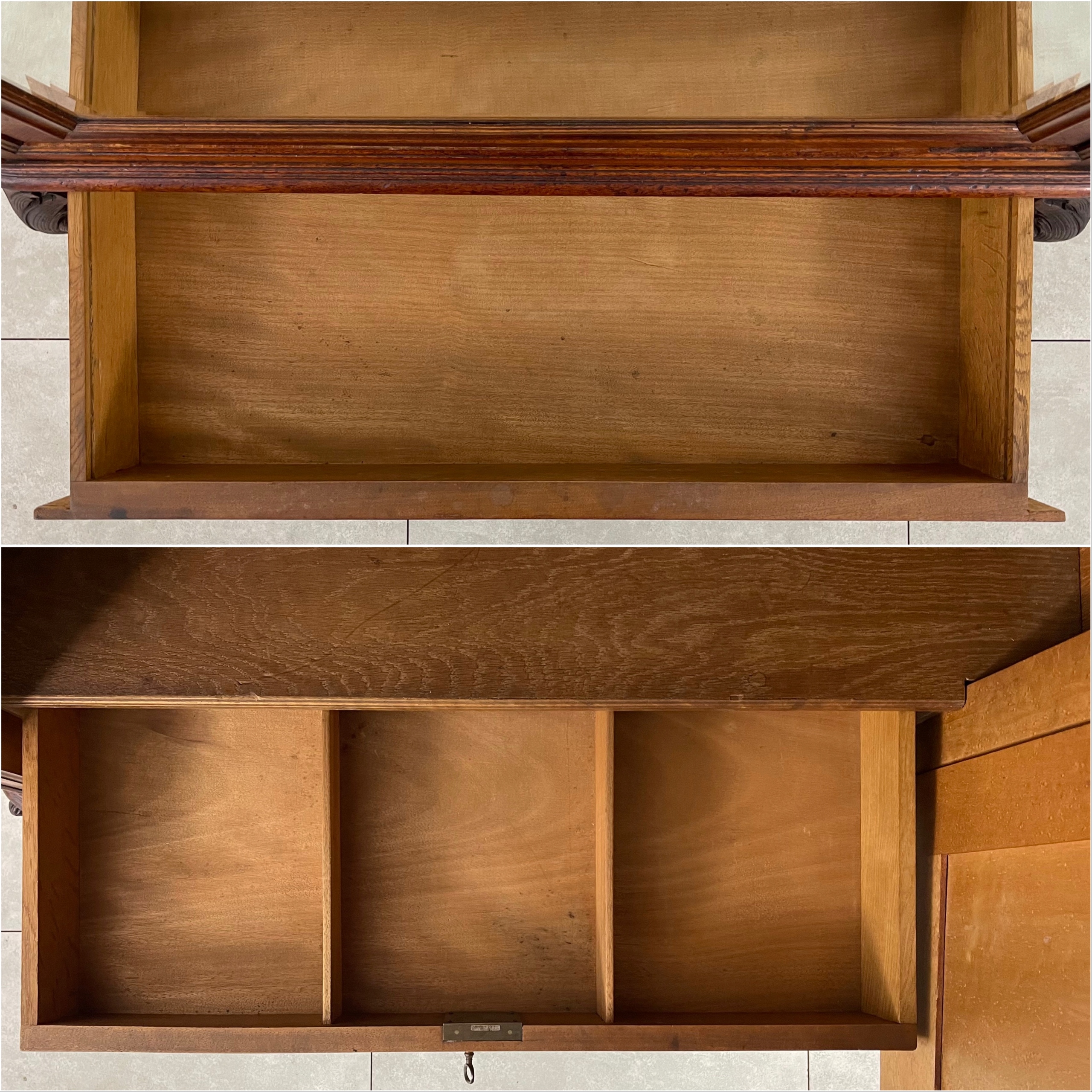 Всередині є три дерев'яні полиці та шухляда з відділеннями, які замикаються. Знизу місткий ящик. Внутрішня частина доглянута та чиста.