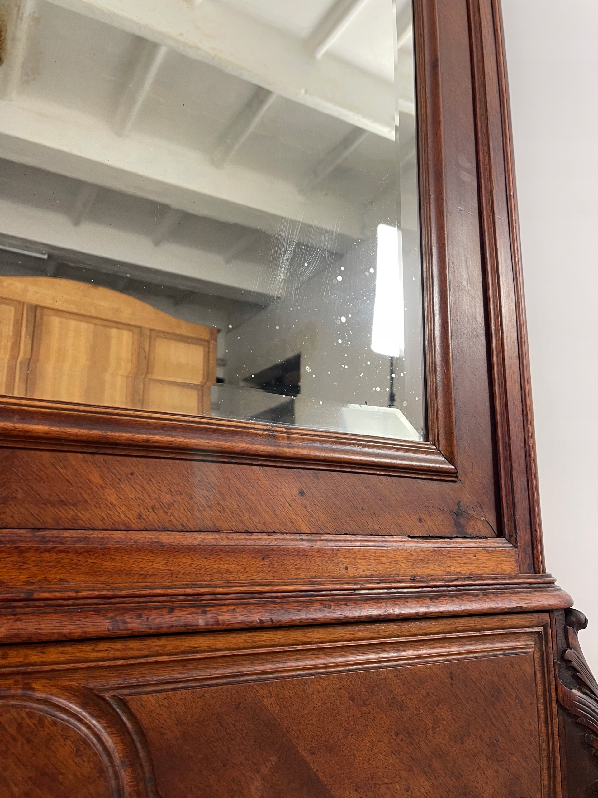 Є оригінальне кришталеве дзеркало. Дзеркало скошене і походить з епохи. Дзеркальна поверхня в хорошому стані, хоча ми можемо побачити невеликі сліди, залишені плином часу (дивіться останнє прикріплене фото).
