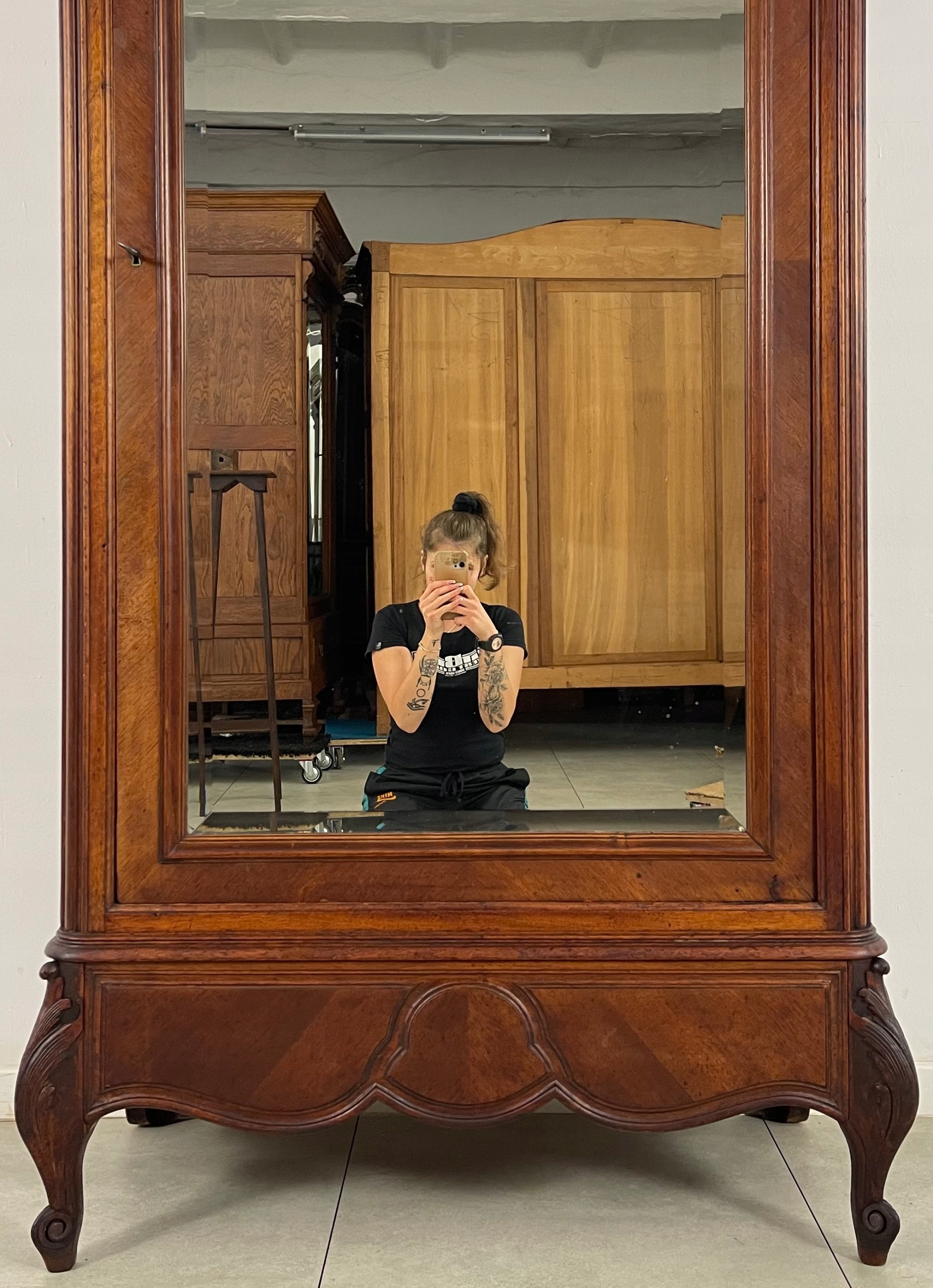 СТИЛЬНА ОДНОДВЕРНА ШАФА LUDWIK ROCAILLE МАСИВ ГОРІХА ФРАНЦІЯ 1927
