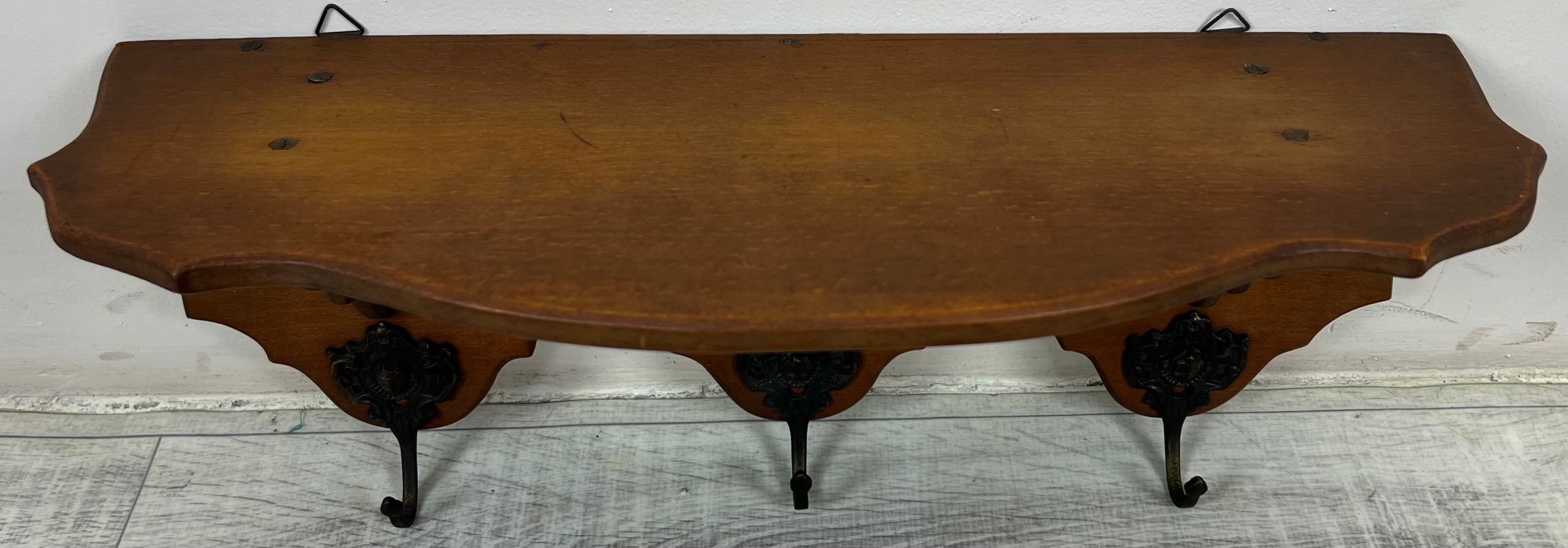 СТИЛЬНА ПІДВІСНА ДУБОВА ВІШАЛКА, ПОЛИЧКА МАСИВНА ДУБА, 3 ГАЧКИ N01