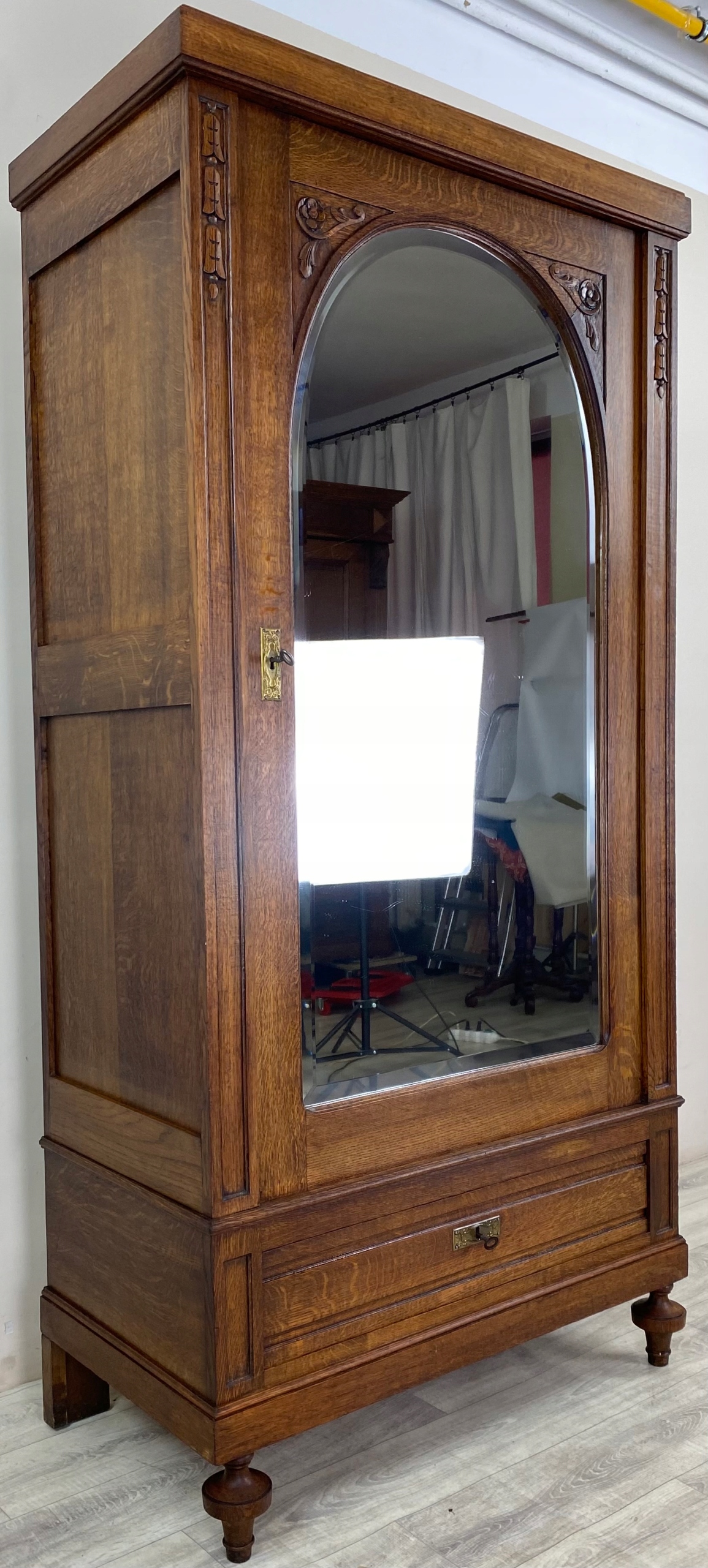 Стильний гардероб з дубового гардеробу з дзеркальним сецесією арт Deco Oak France U24