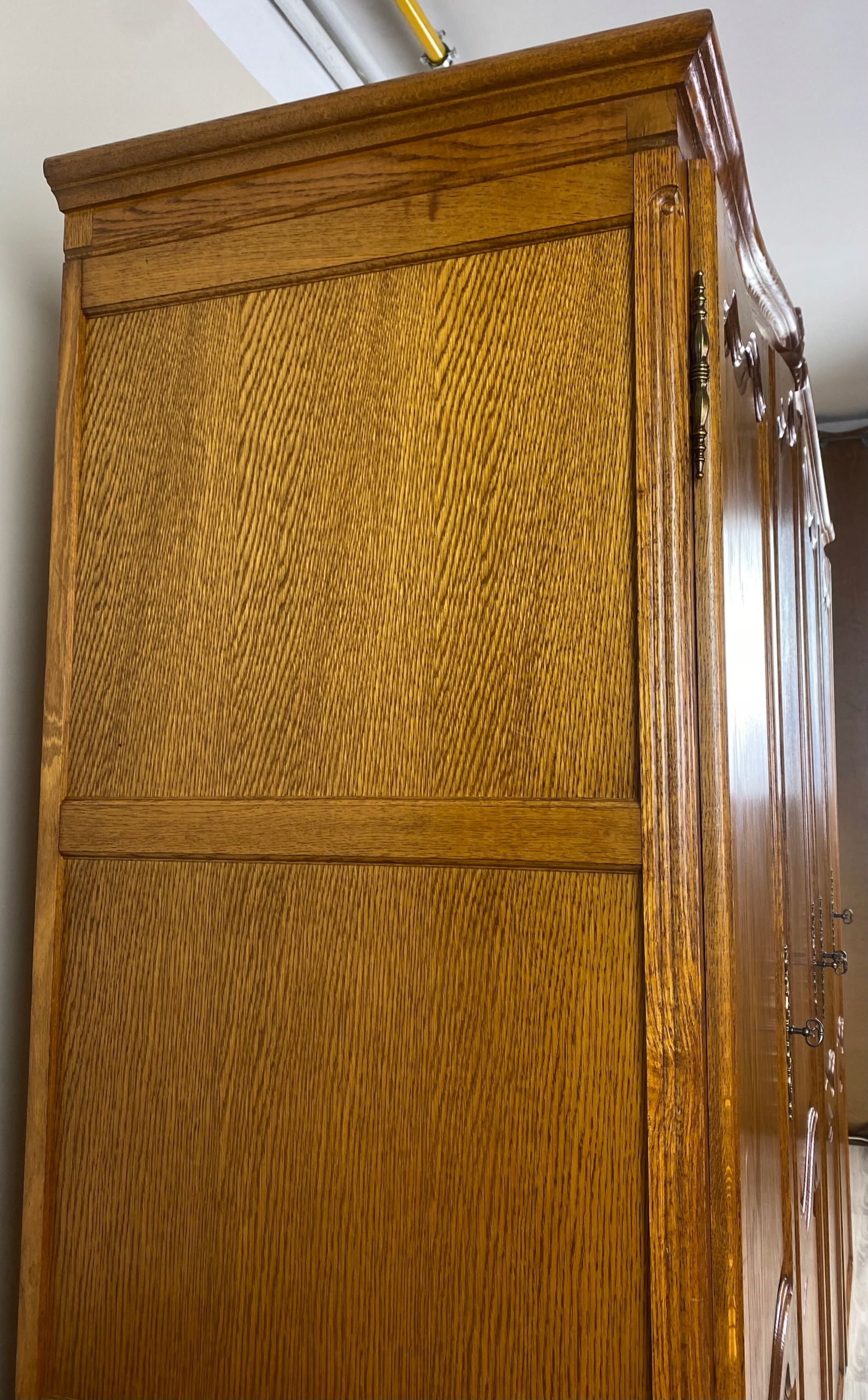Шафа чотиридверна з масиву дуба та столярної дошки.