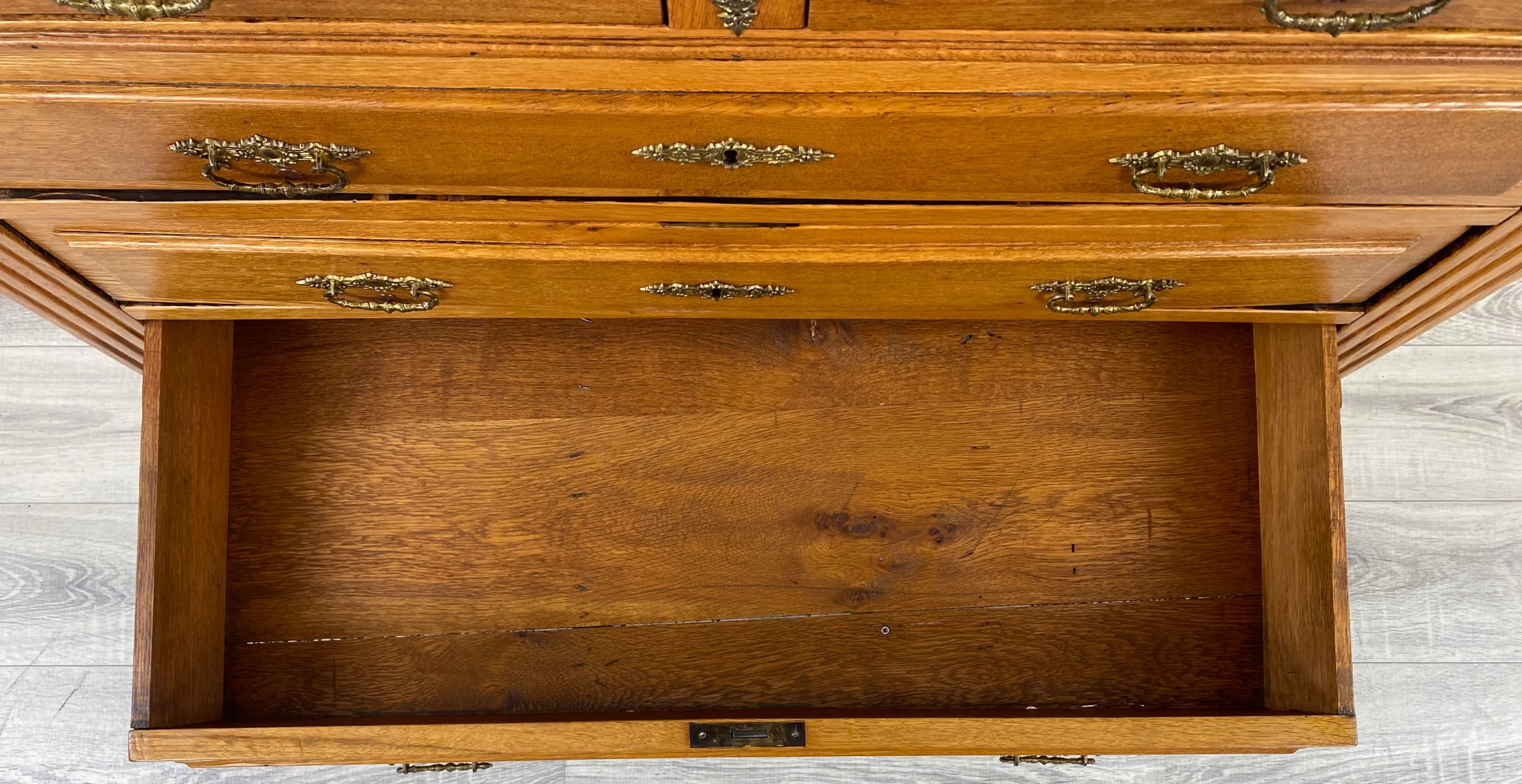 Компонування: дві менші шухляди зверху, три широкі глибокі шухляди внизу.