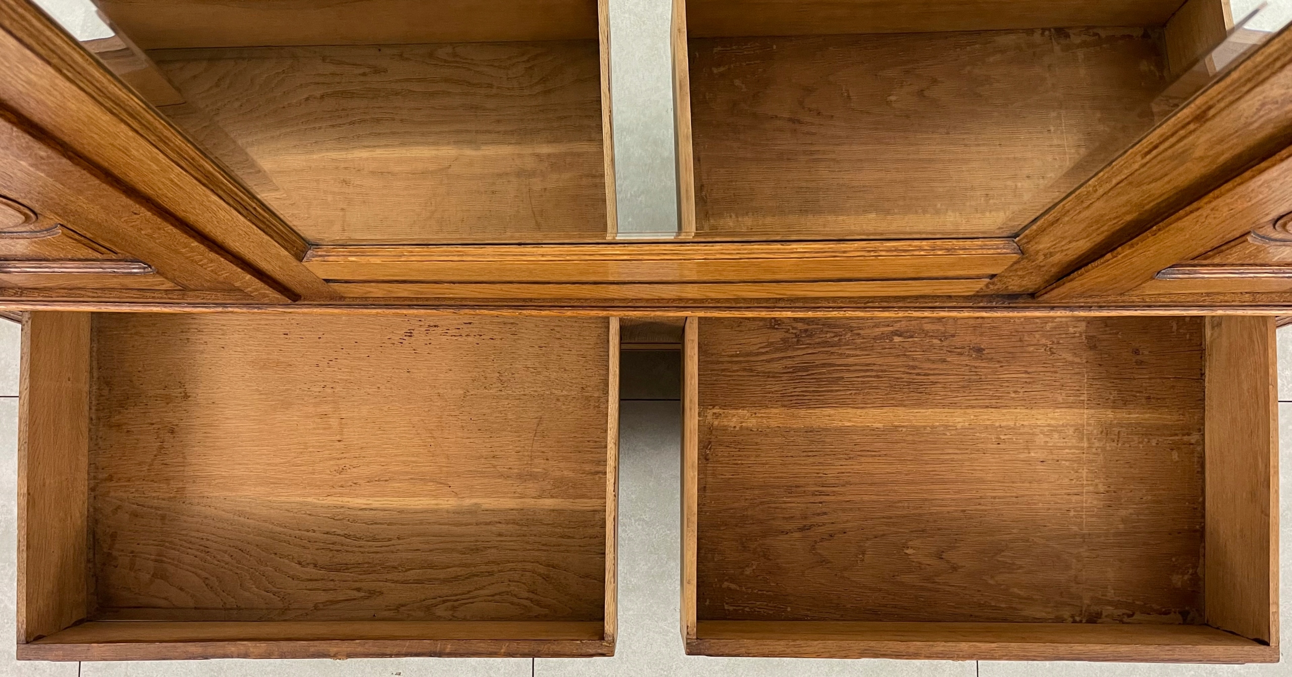 Всередині шафи ручка, а внизу два містких ящика. Всередині охайно та чисто.