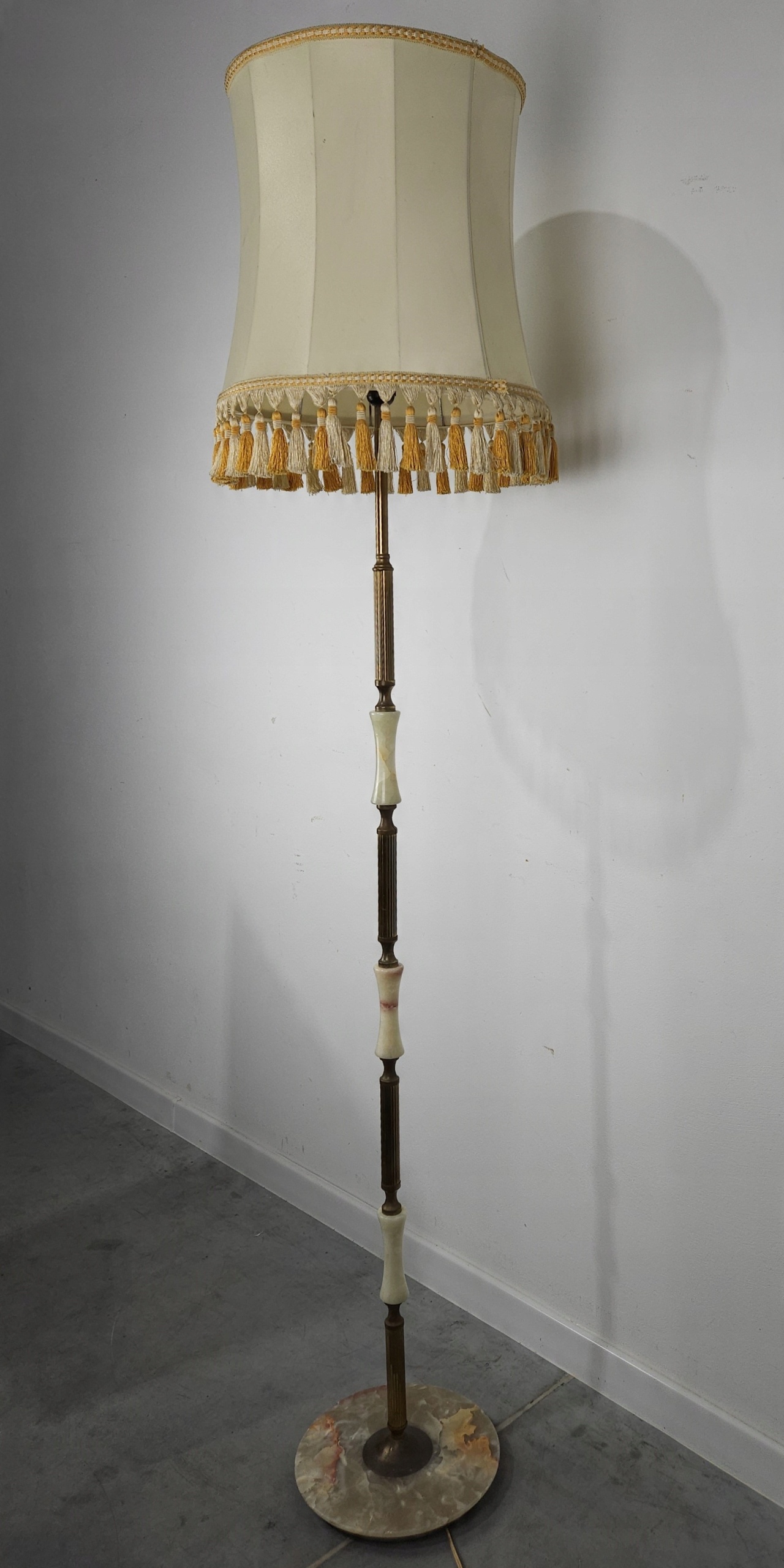 СТИЛЬНА СТОЯЧА ЛАМПА ЛАТУНЬ ОНІКС ВІНТАЖНИЙ АБАЖУР ВИСОКИЙ