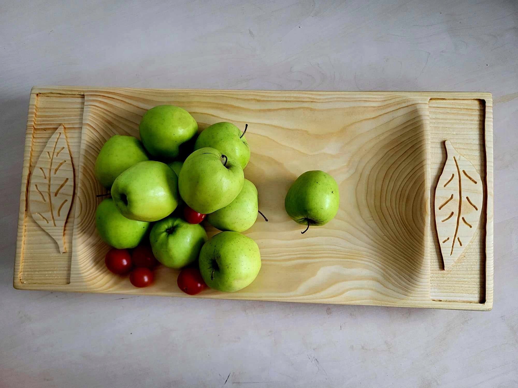 - Це ручна дерев'яна, стильна, містка таця для їжі, розмір45 cm