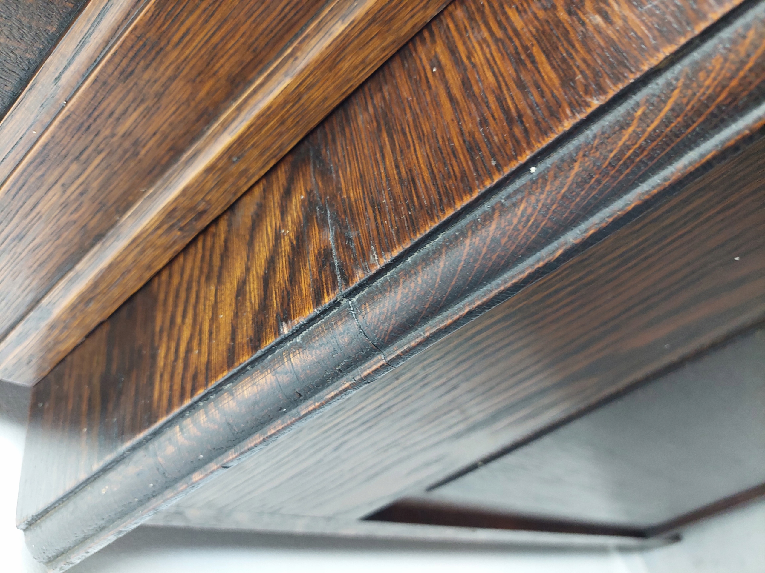 Стильний гарний буфет із дуба, імпортований із Франції. Тумба в хорошому стані. Замки працюють, в комплекті 4 ключа. На стільниці є сліди використання, такі як подряпини та зміна кольору. Нижня ліва дверцята з невеликим природним висиханням. Меблі двоелементні, регульовані. Детальні фото нижче