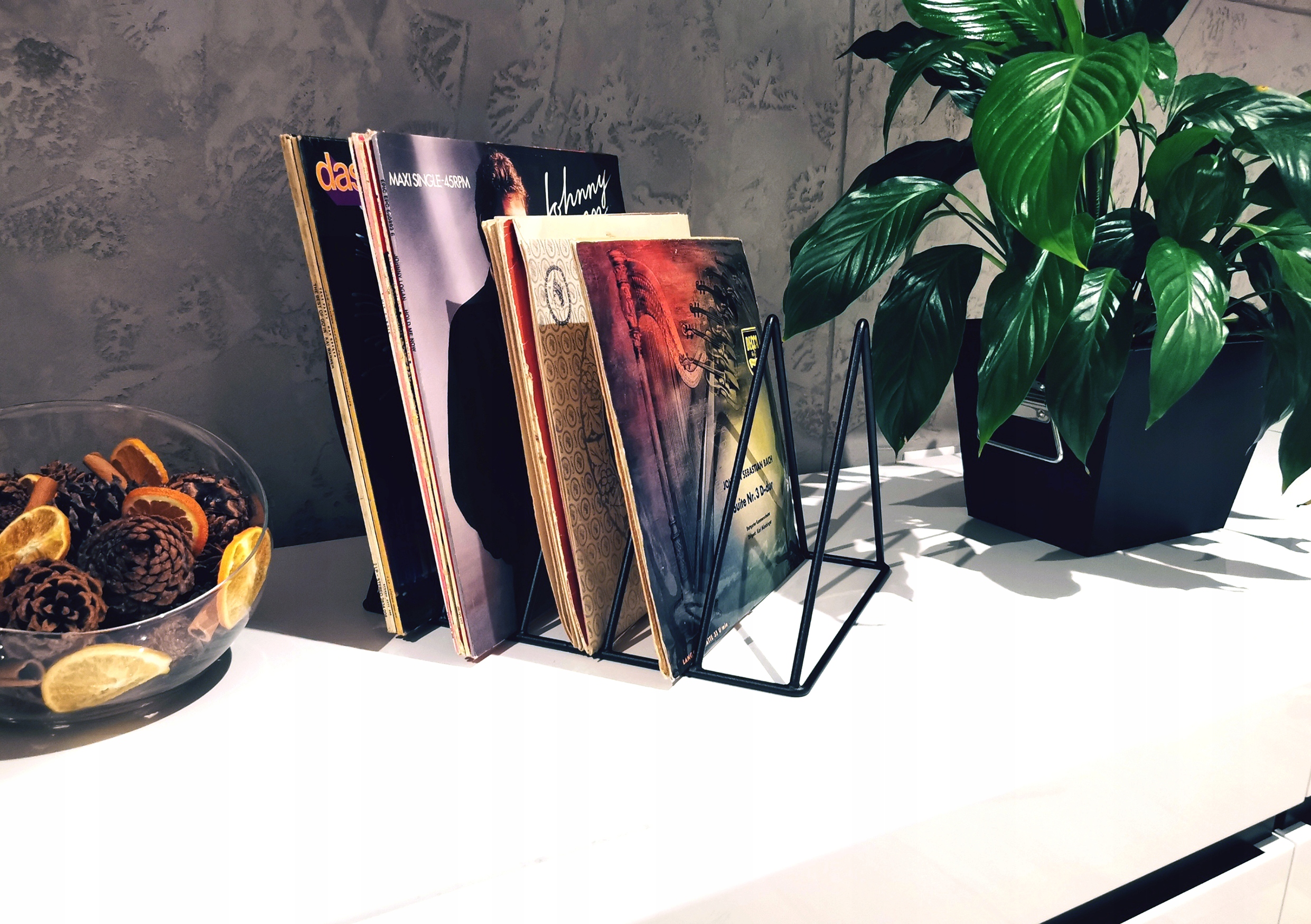 Стильний стелаж для вінілових платівок.