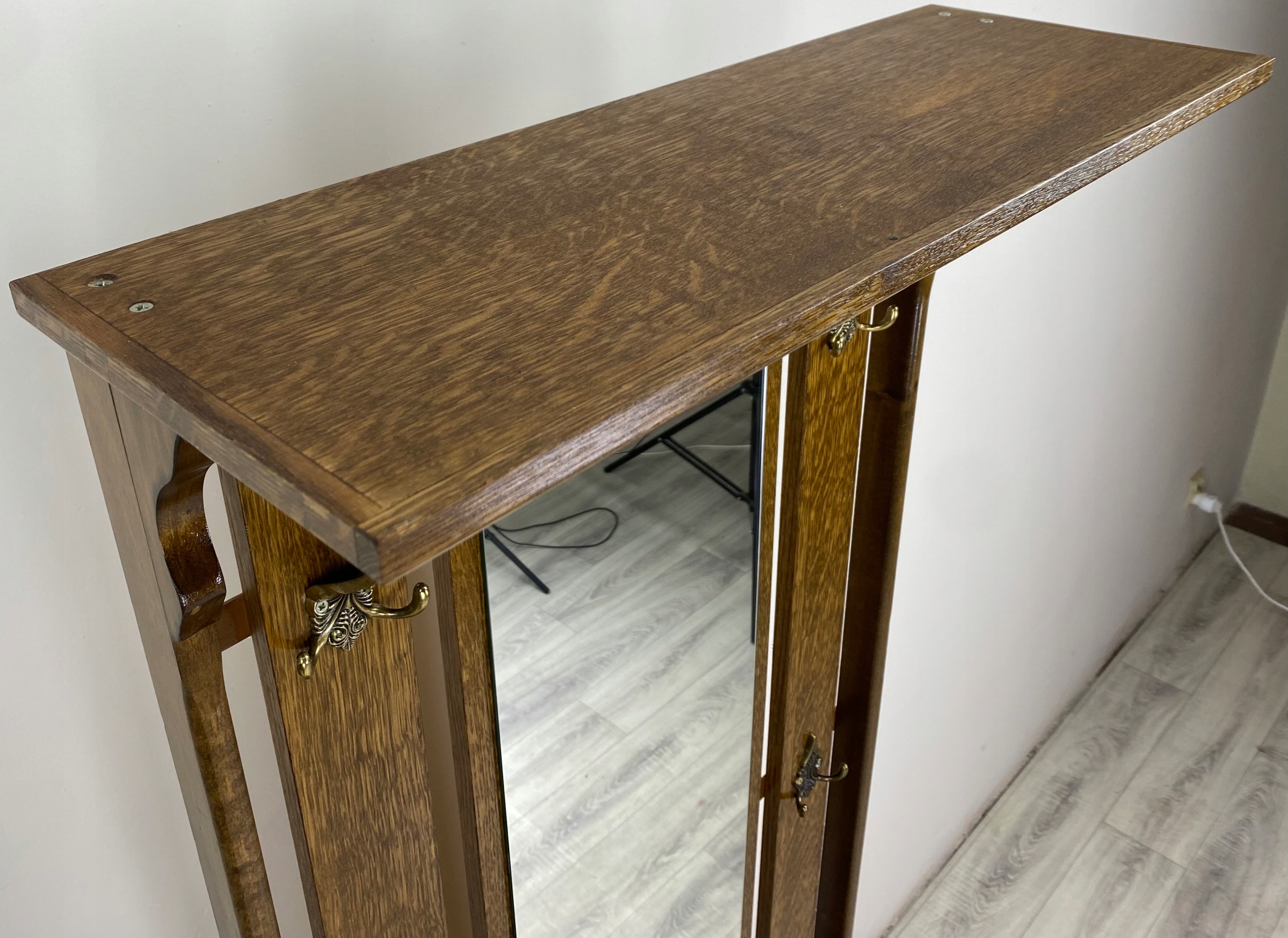 Тема аукціону - це стильна стояча дубова вішалка, голландський гардероб з дзеркалом