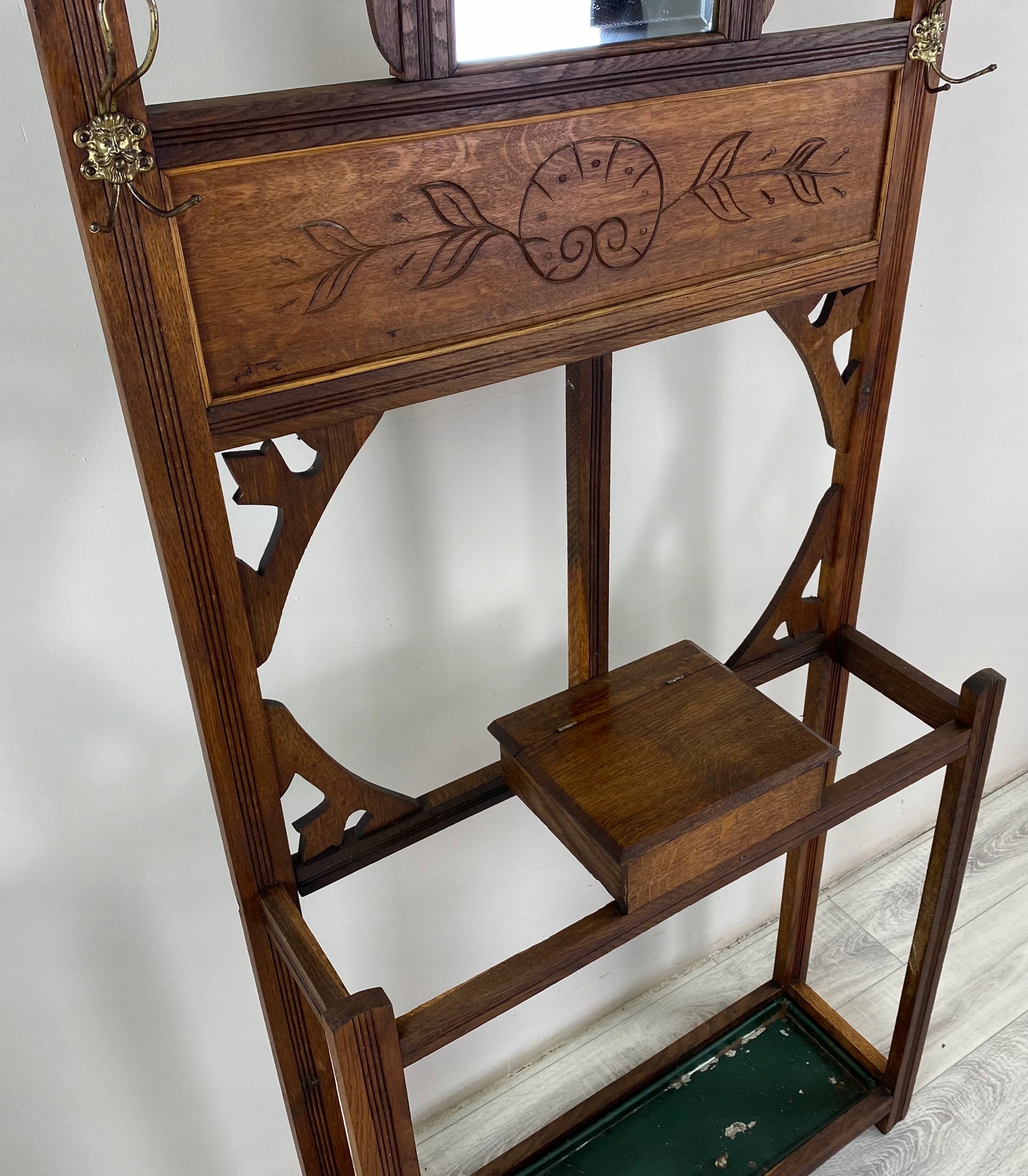 Предмет аукціону СТИЛЬНА ДУБОВА ВІШАЛКА СТОЯЧА ШАФА З ДЗЕРКАЛОМ СЕКЦЕСІЇ