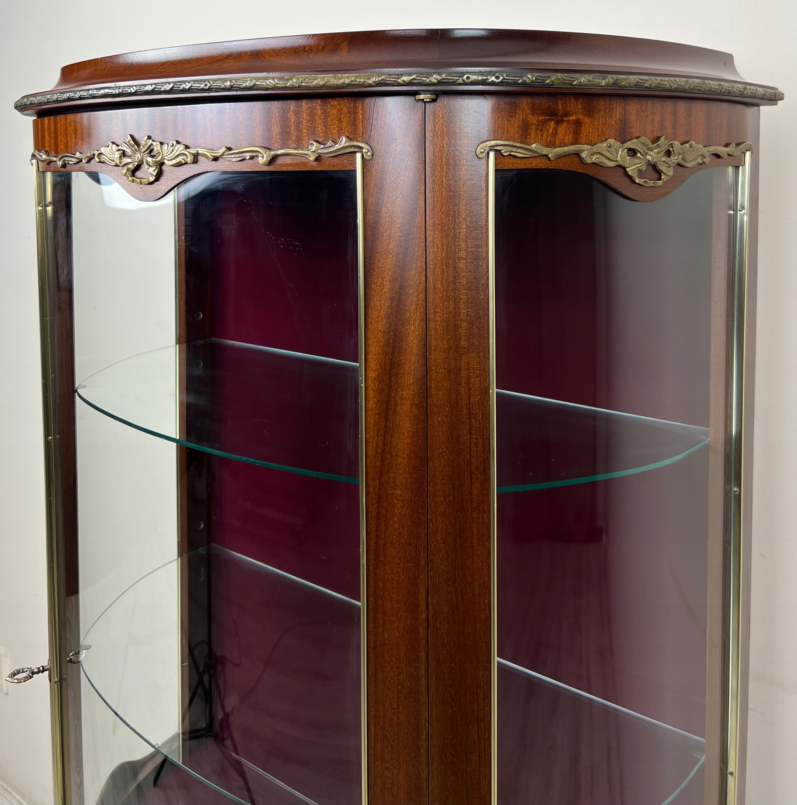 Всередині вітрини є видимі ознаки використання - дві останні оксамитові полиці.