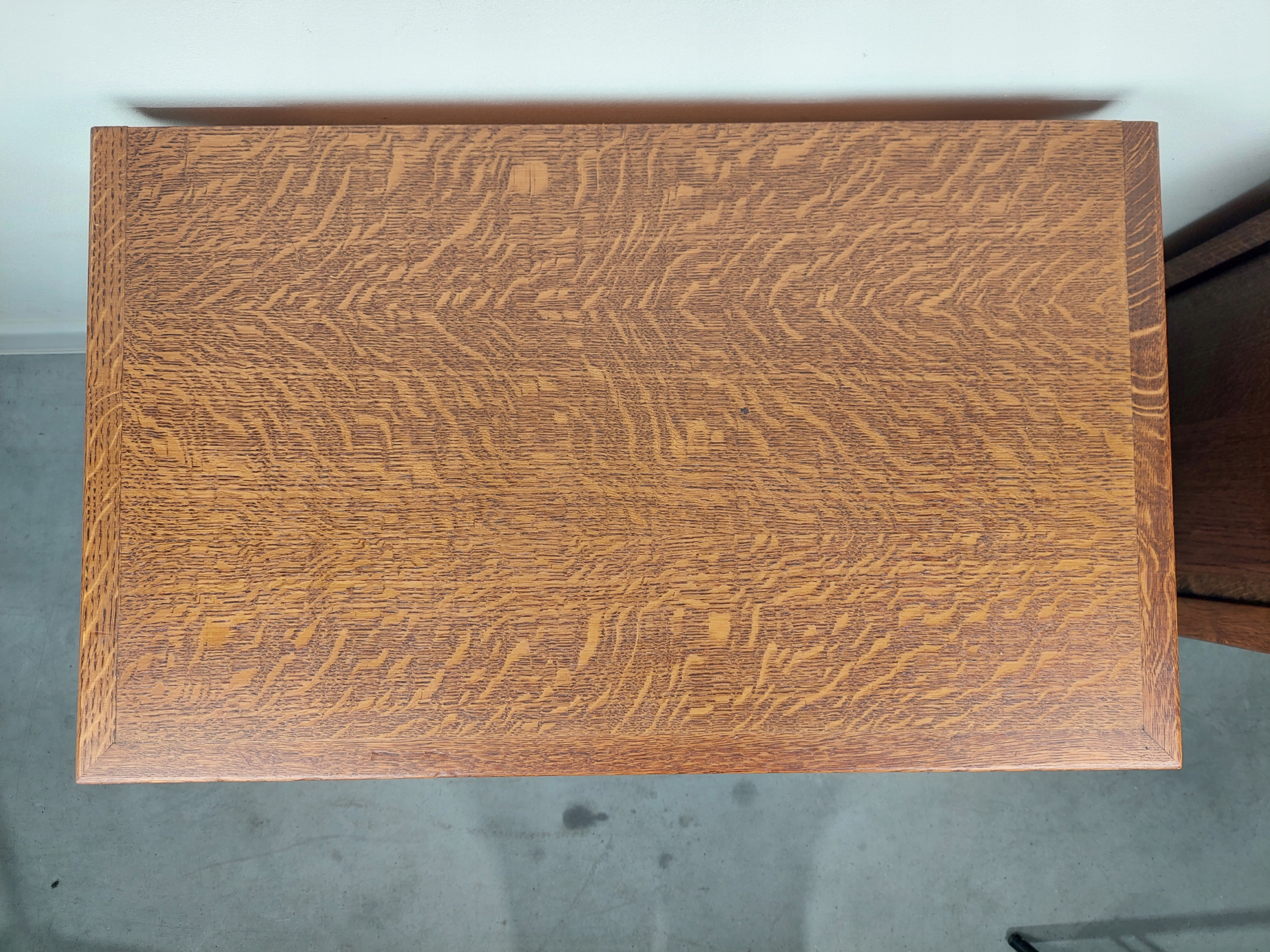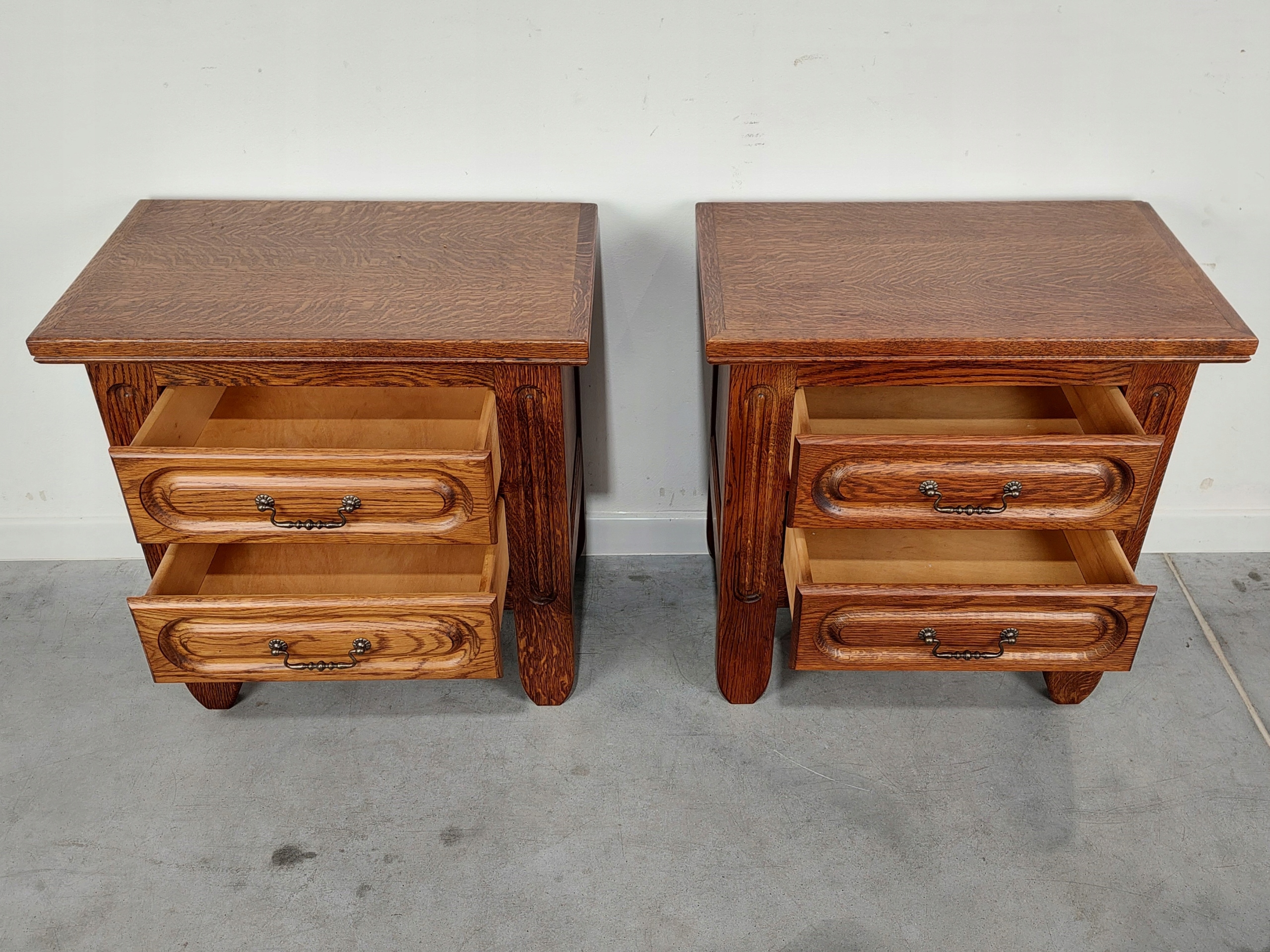 Стильне дубове голландське ліжко з тумбочками, привезене з Нідерландів. Конструкція меблів - масив дуба. Меблі мають типові сліди використання, меблі не мають конструктивних дефектів і знаходяться в хорошому стані. Є можливість встановити бічні ламелі задом наперед, щоб матрац глибше опускався. Деталі описані та показані на фотографіях.