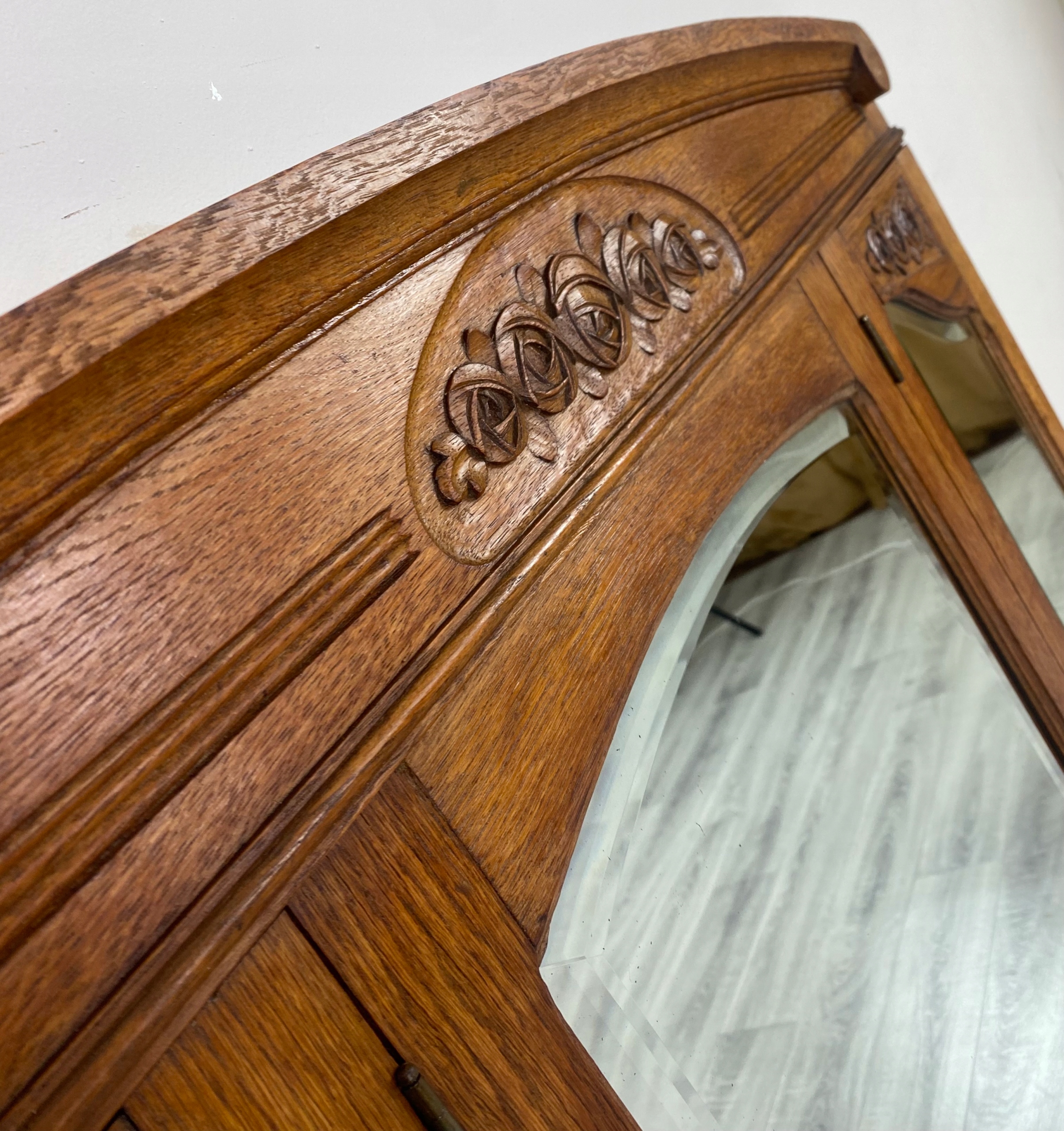 Верхня частина дзеркала має арочний карниз із красивими, вирізаними вручну рослинними мотивами.