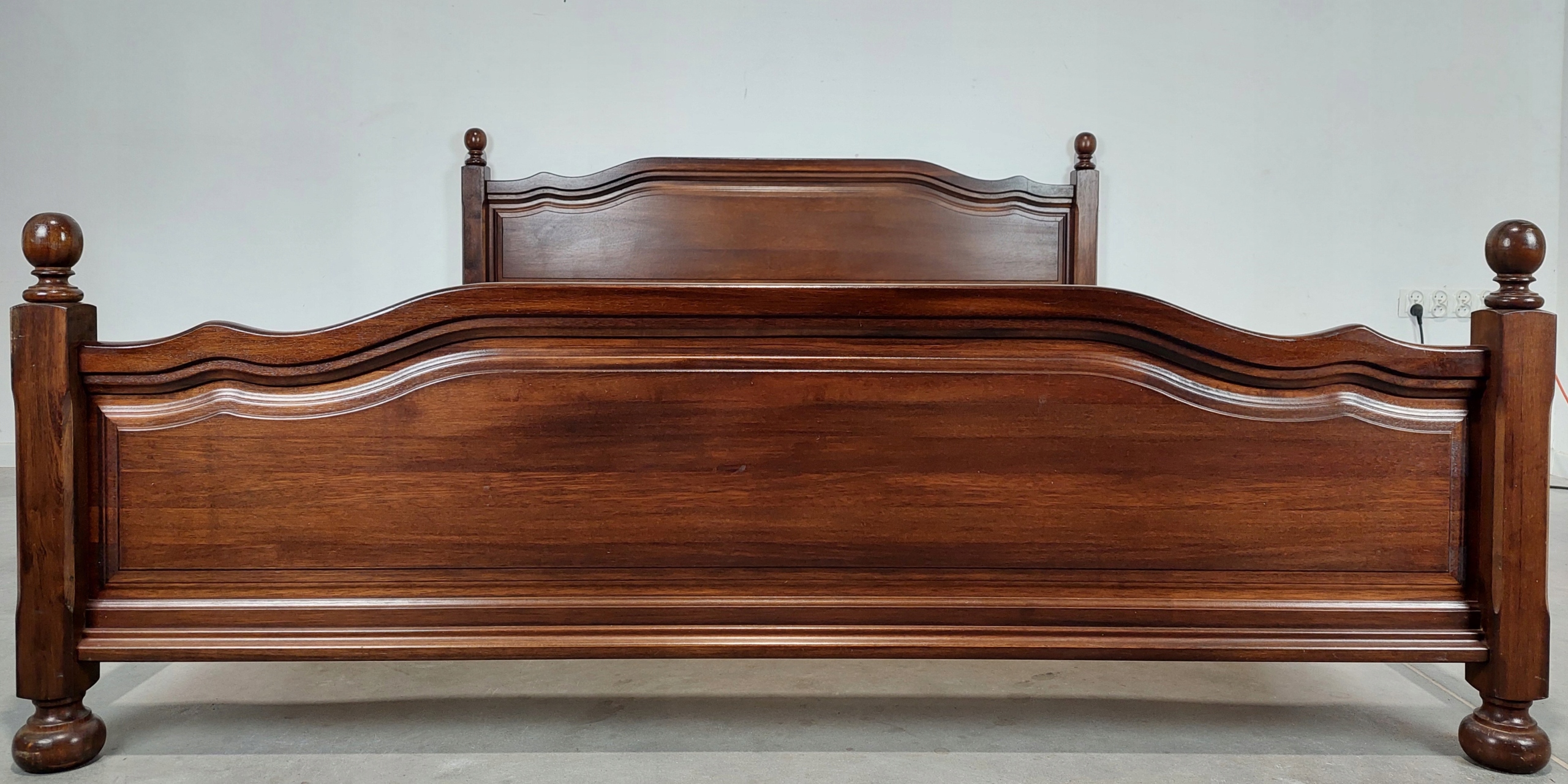 Стильне голландське дубове ліжко, привезене з Нідерландів. Меблі з дуба, з шпонованими елементами. Є сліди використання, такі як подряпини та зміни кольору. Деталі описано та показано на фотографіях.