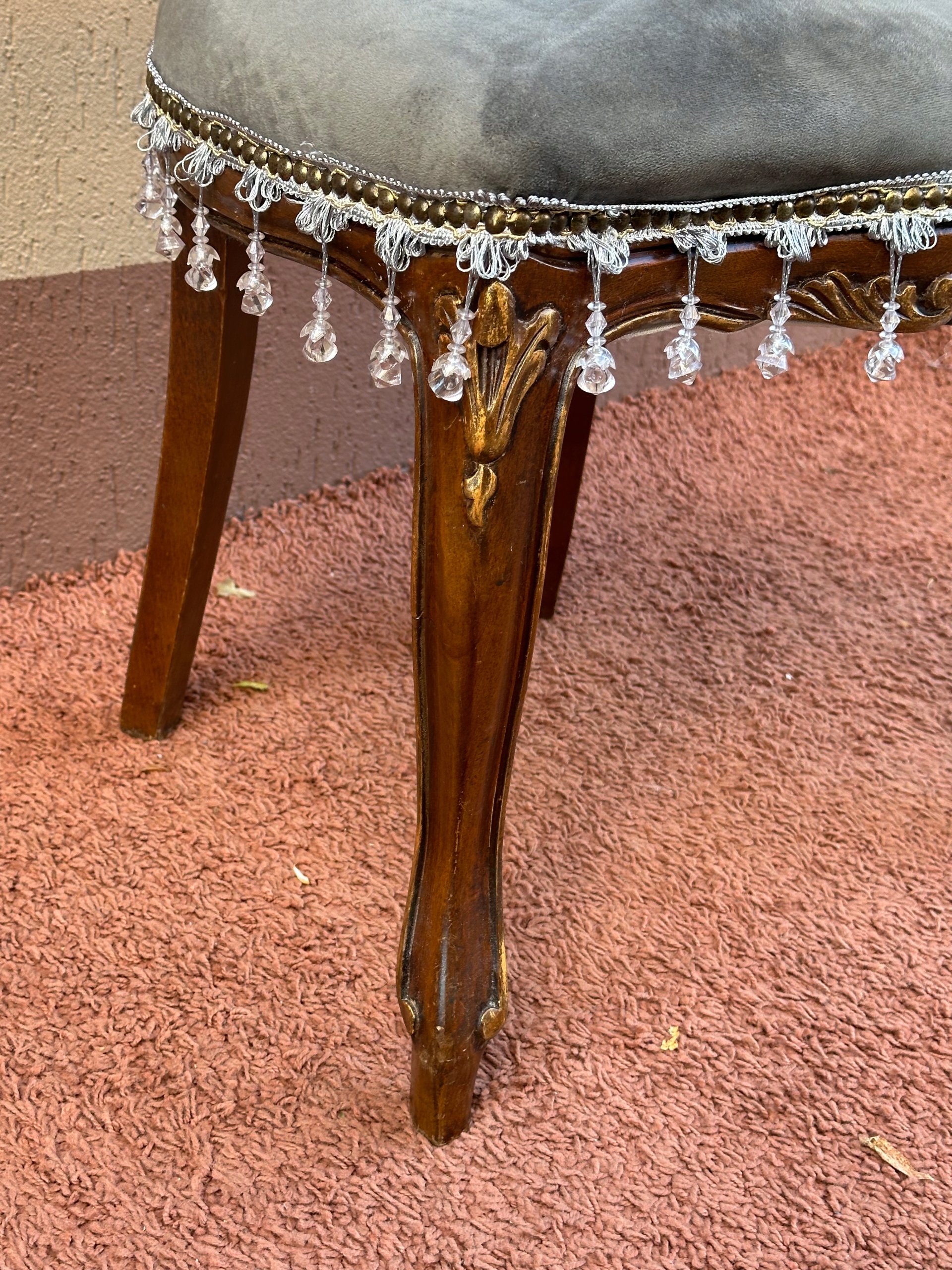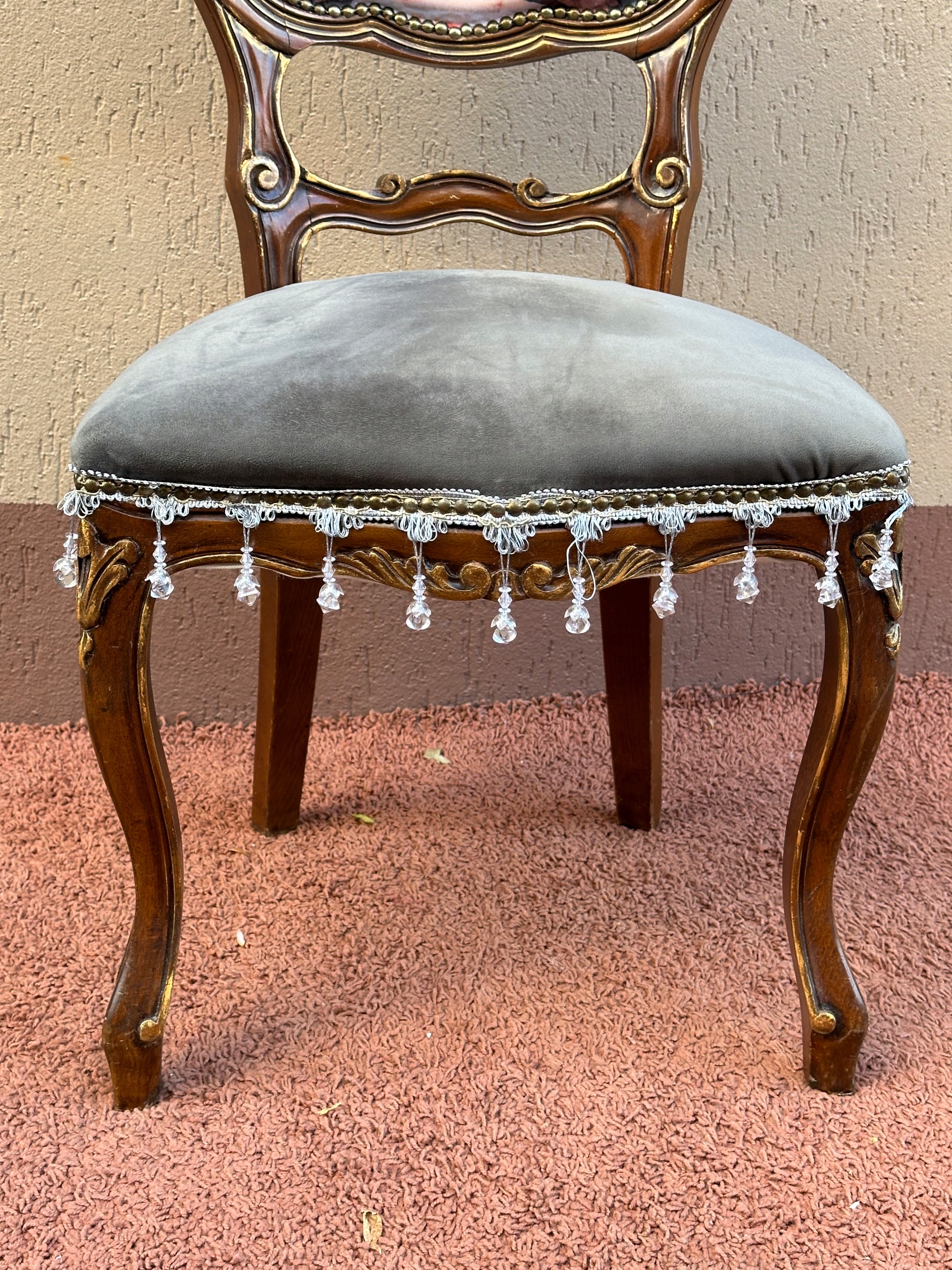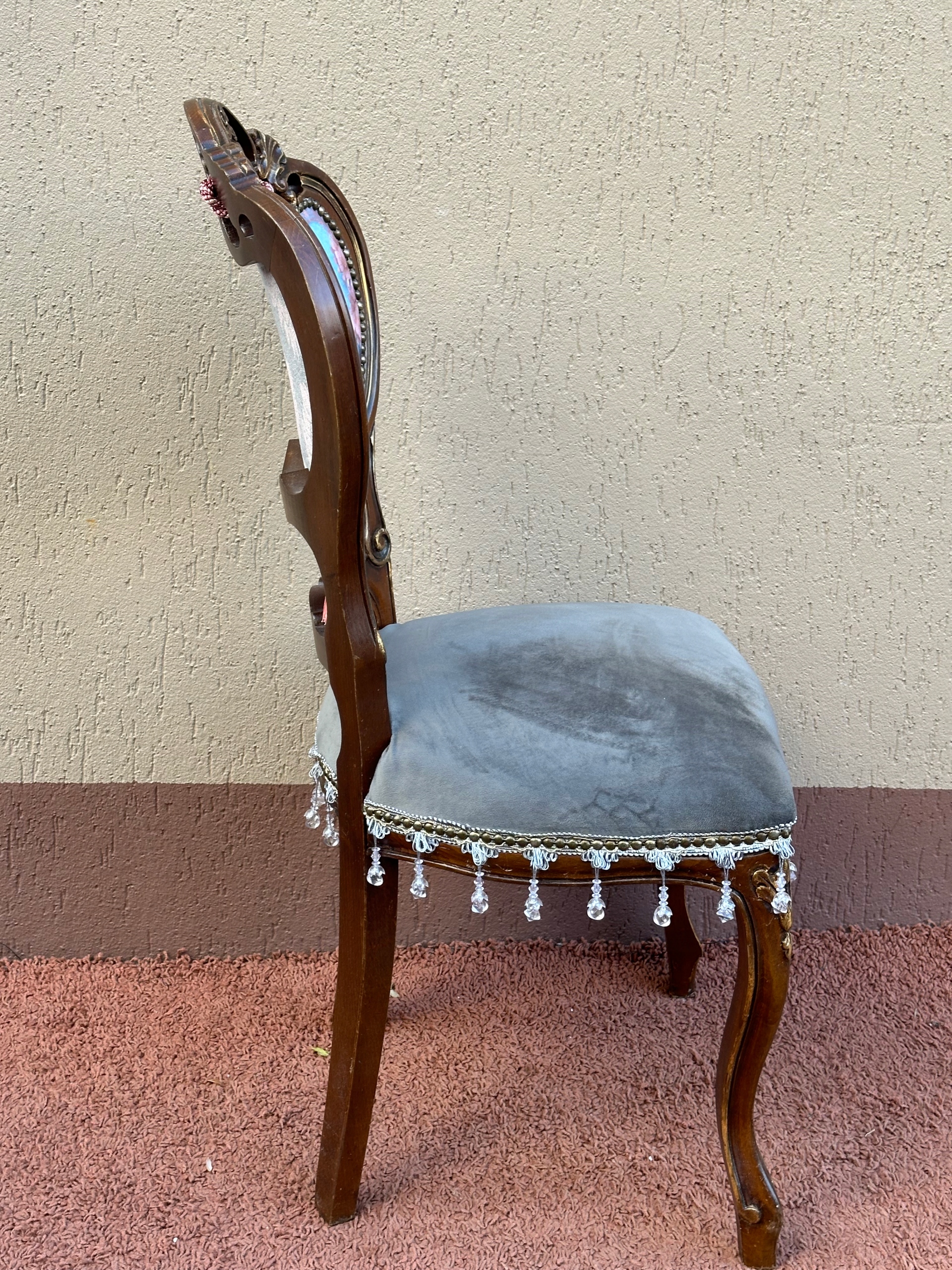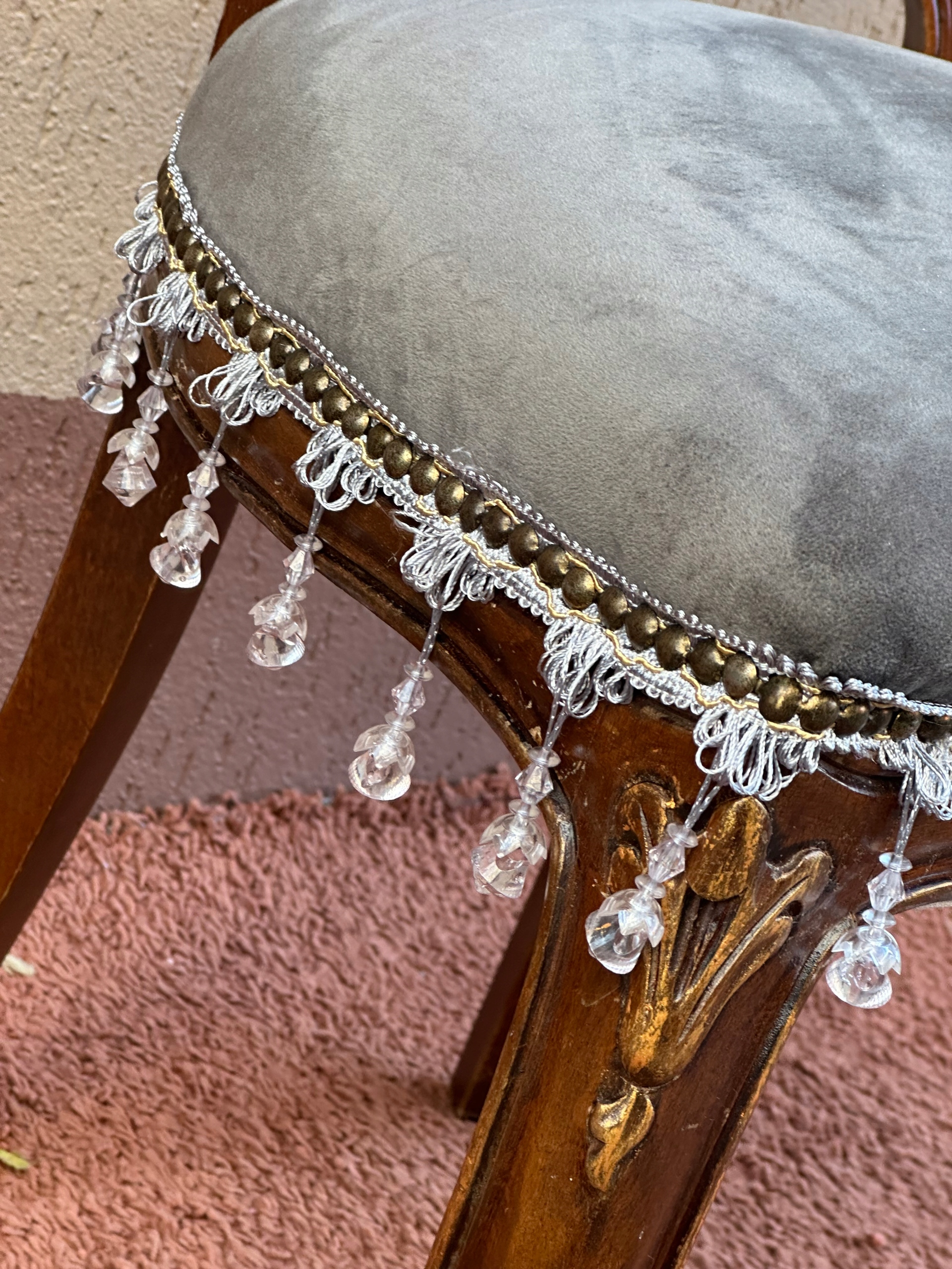 І СИДІННЯ - СІРИЙ ОКСАМИТ З РУЧНИМ ОБРОБЛЕННЯМ НАМИСТИНАМИ.