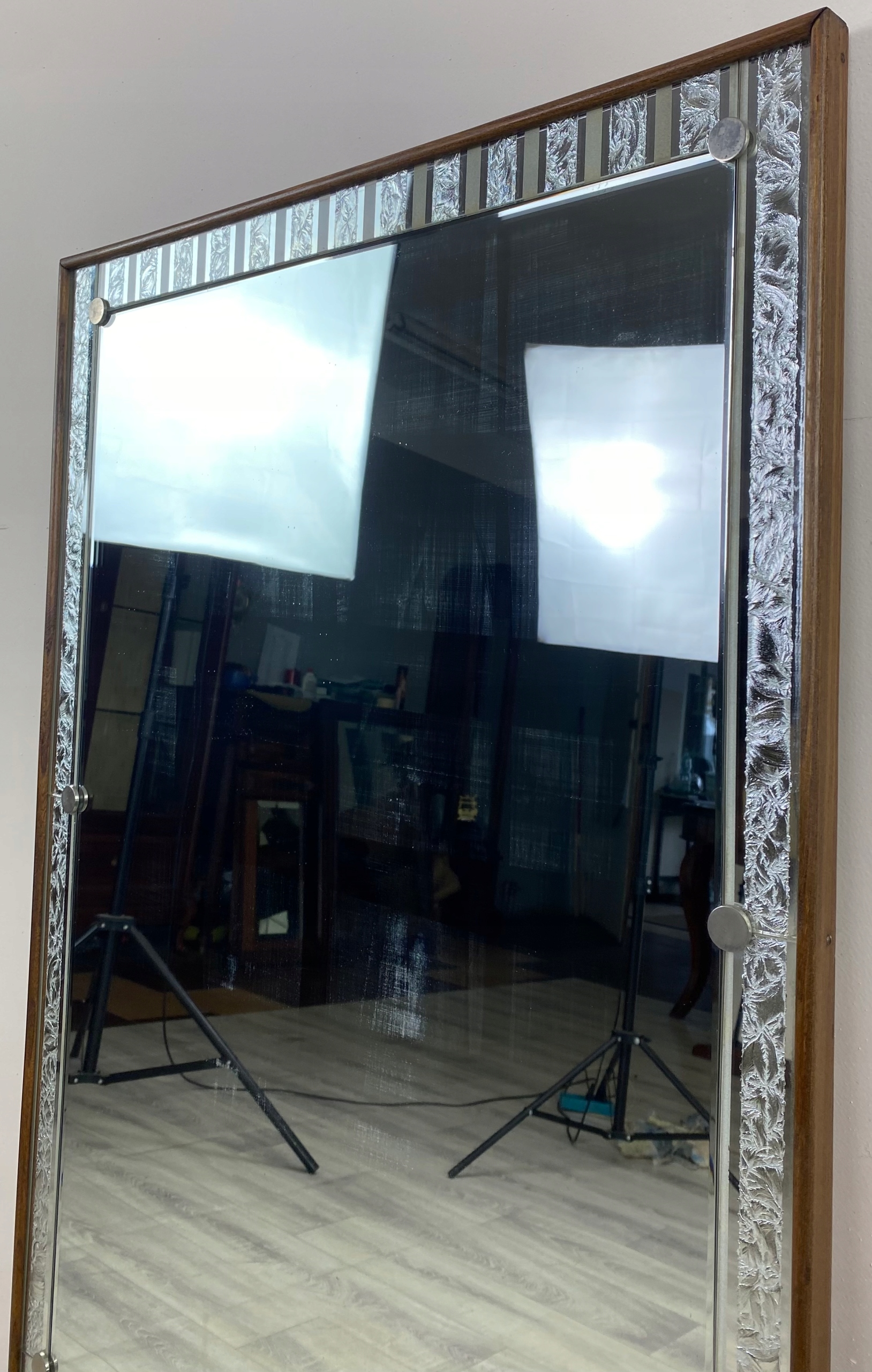 Поверхня дзеркала має дефект, який видно на фотографіях.